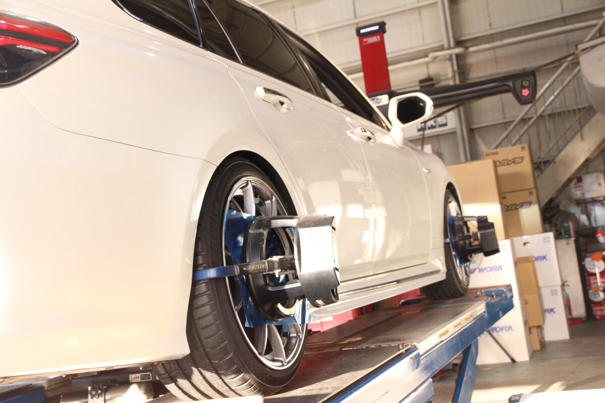 4輪のアライメント調整へ作業を移ります。
