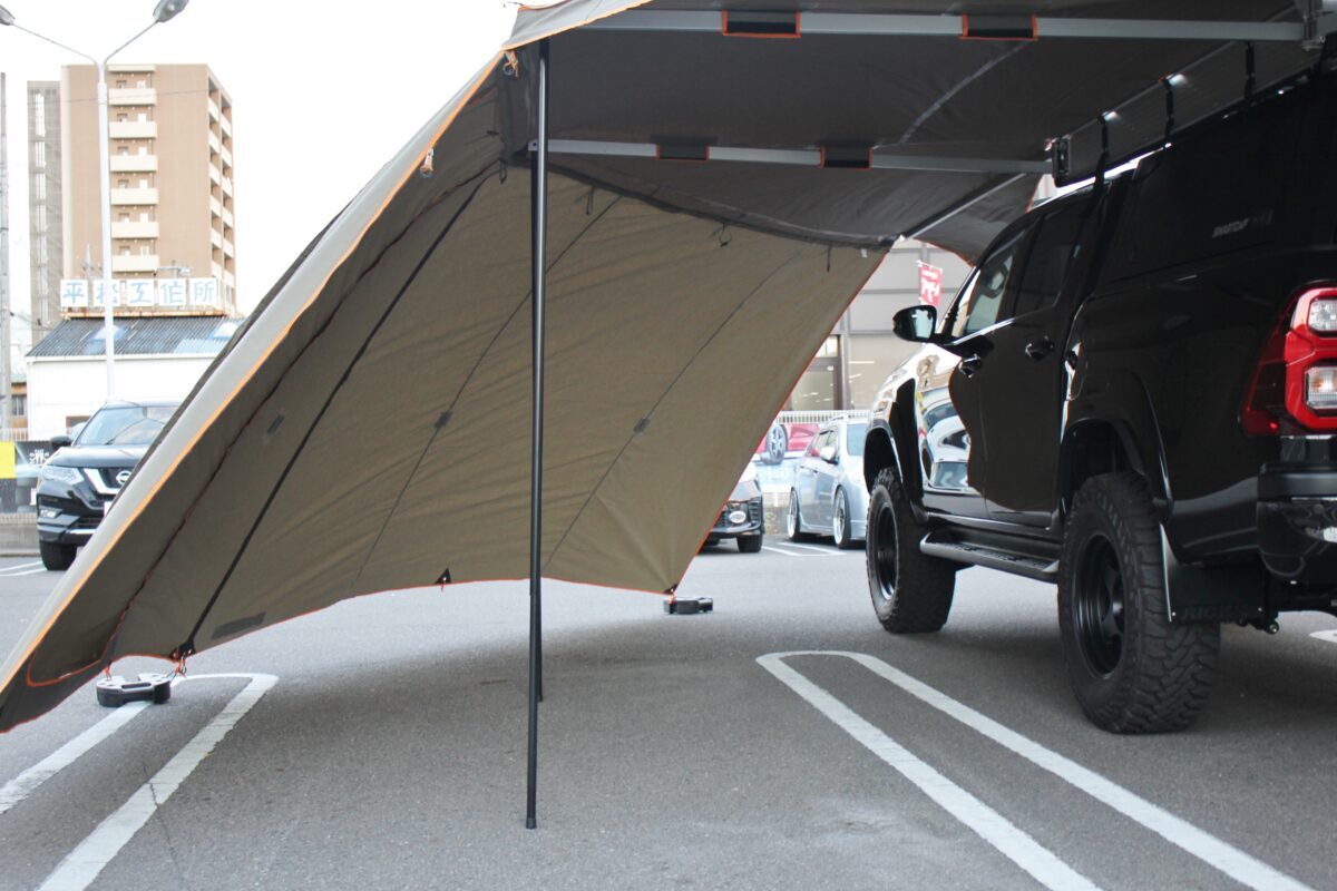 ボクは、ルーフラックにサイドオーニングを装着し、即席秘密基地を作ってキャンプを楽しんでいます^^