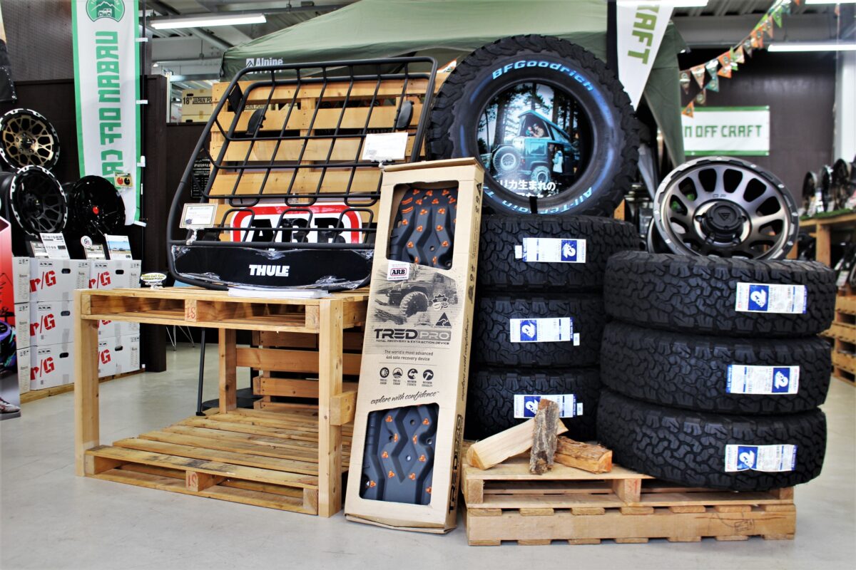 スタッドレス展示を片付けて新たにアーバンオフ系ブースを作りました。