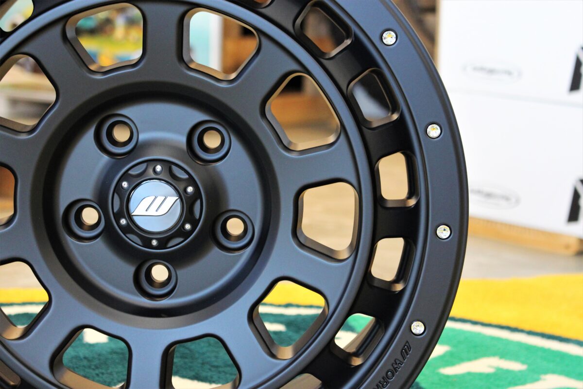 リム部のピアスドリルド加工、センターオーナメントのWマーク以外はマットブラック仕様に。