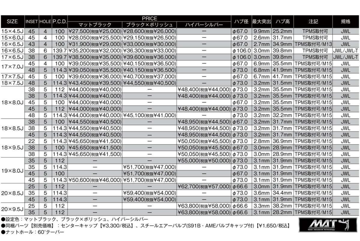今回、入荷したのは8.0×18インチ +45 5/100 マットブラック。