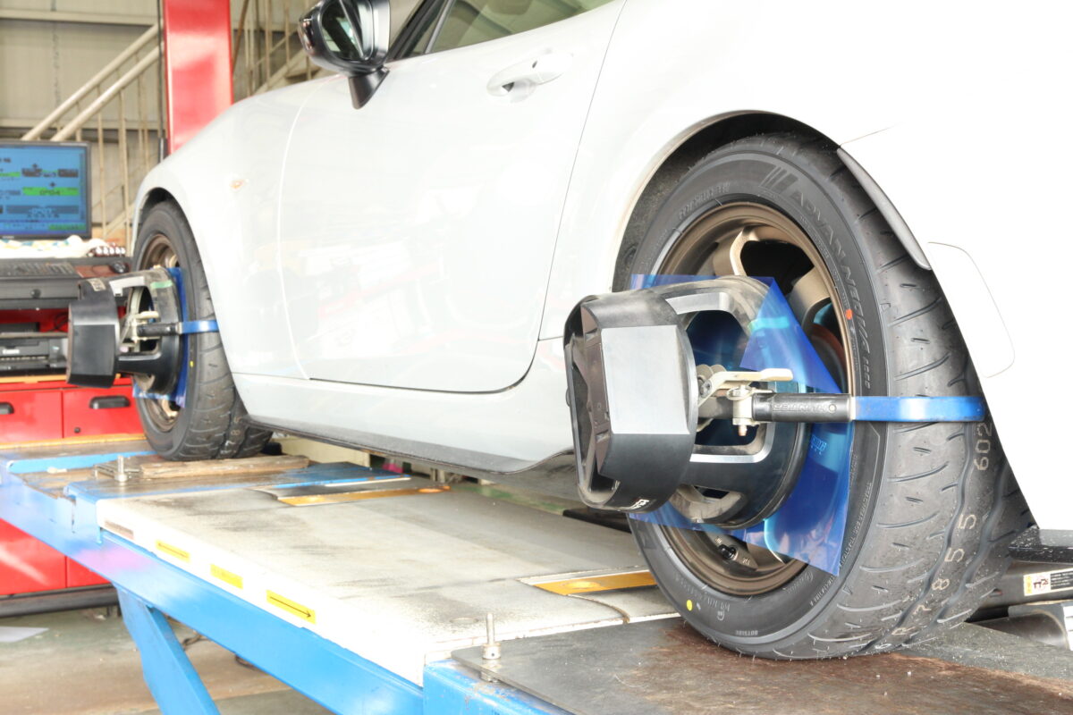 4輪のアライメント調整でフロント トゥ角、キャンバー角、キャスター角