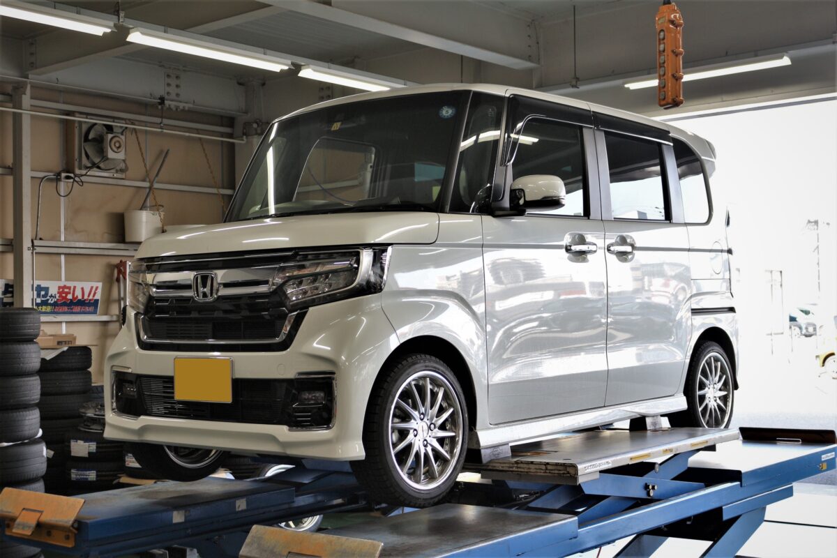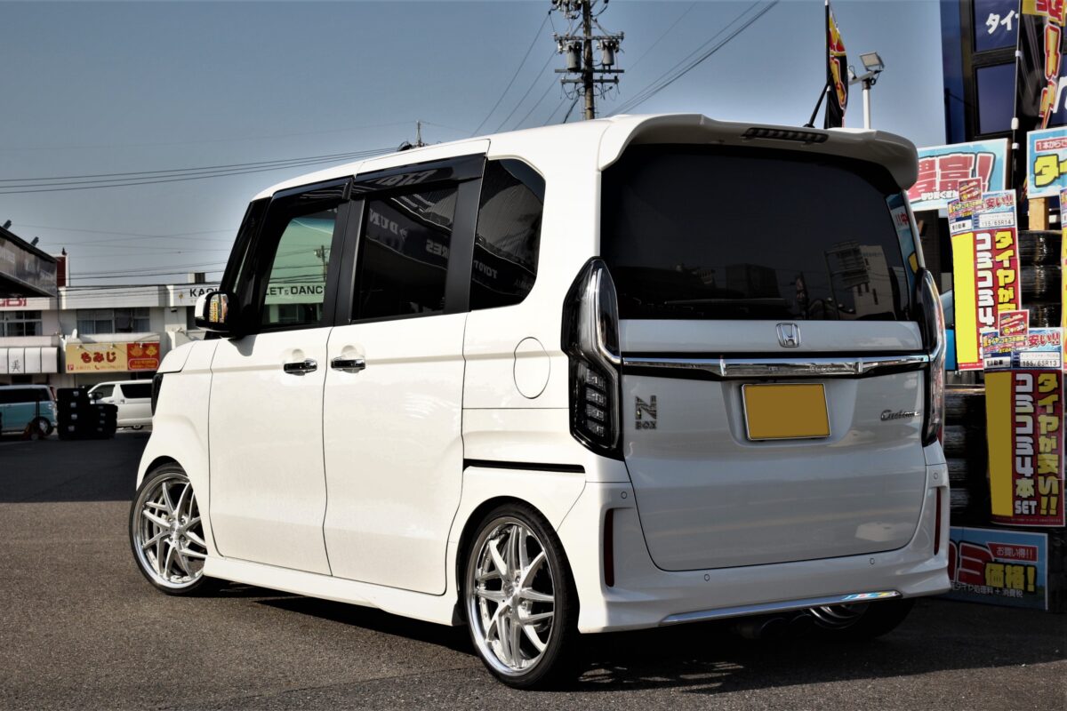 ■JF3N-BOXカスタムにWORK リザルタードメッシュ2を拘りツライチで装着!!