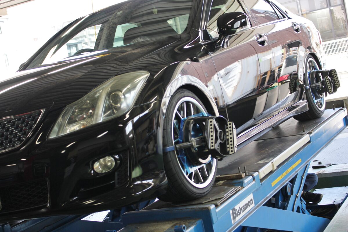 ホイール装着後に、仕上げのアライメント調整。