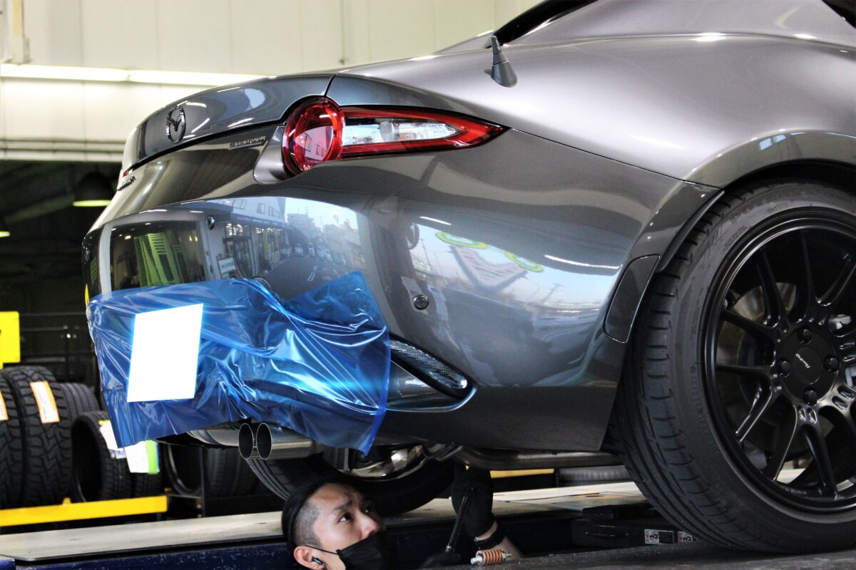 車高調、ホイール、スタビ、マフラー…と納車から着々と進化を遂げているNDロードスターRF。