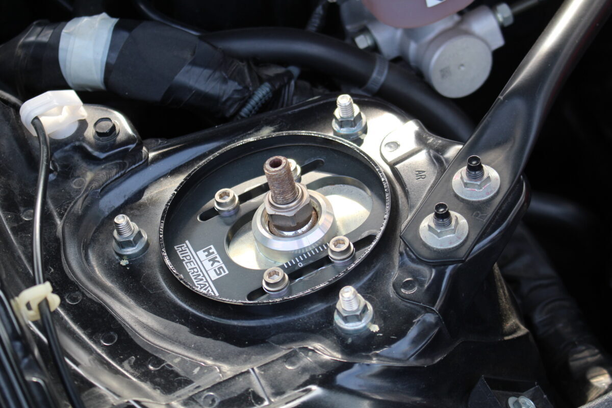 車種によって異なりますが、ピロアッパー式を採用。これで、キャンバー角等も自在に操ることができ、