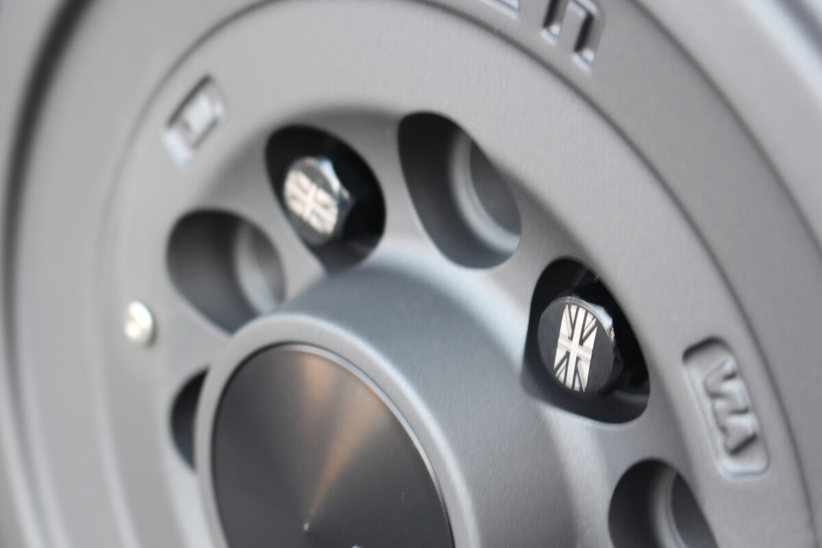 MINI専用にリリースされたユニオンジャック・ボルト。天面部分にイギリス国旗があしらわれており、