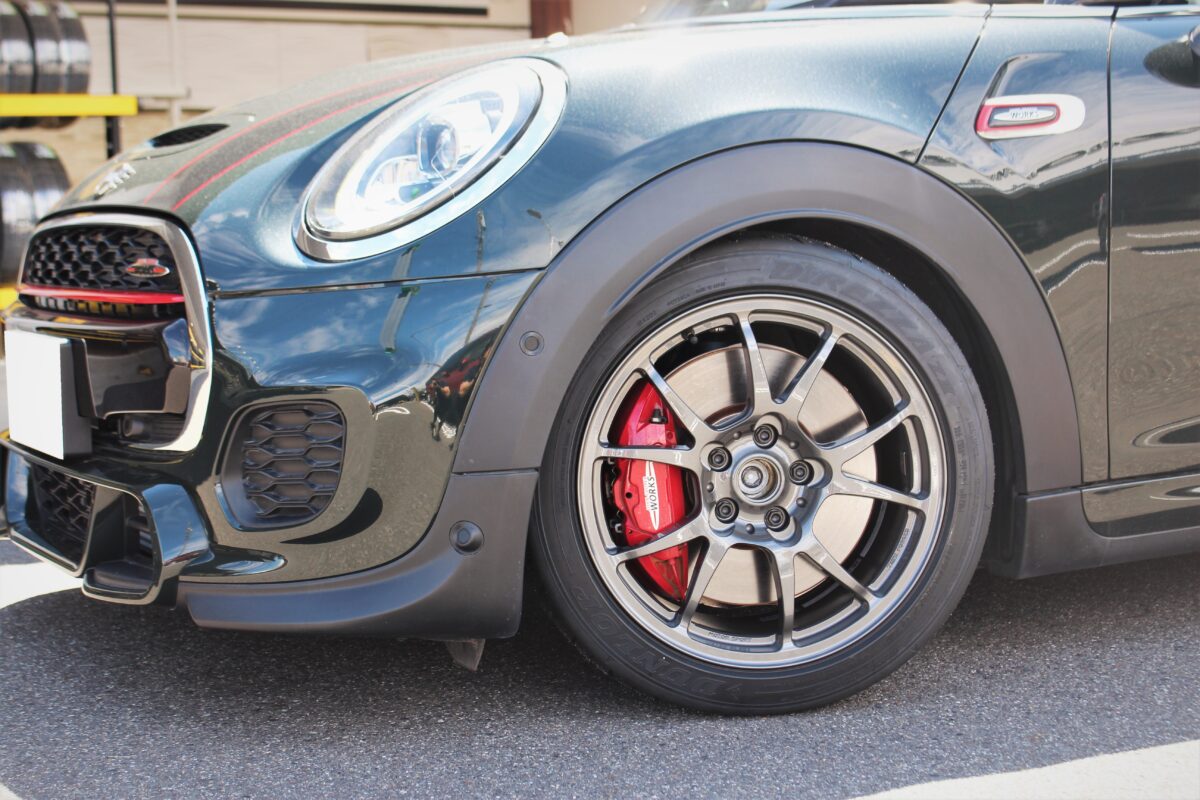 ホイールサイズがシビアなF56 Miniですが、4ポットキャリパーもしっかりと逃がしながら8.0J装着完了です!