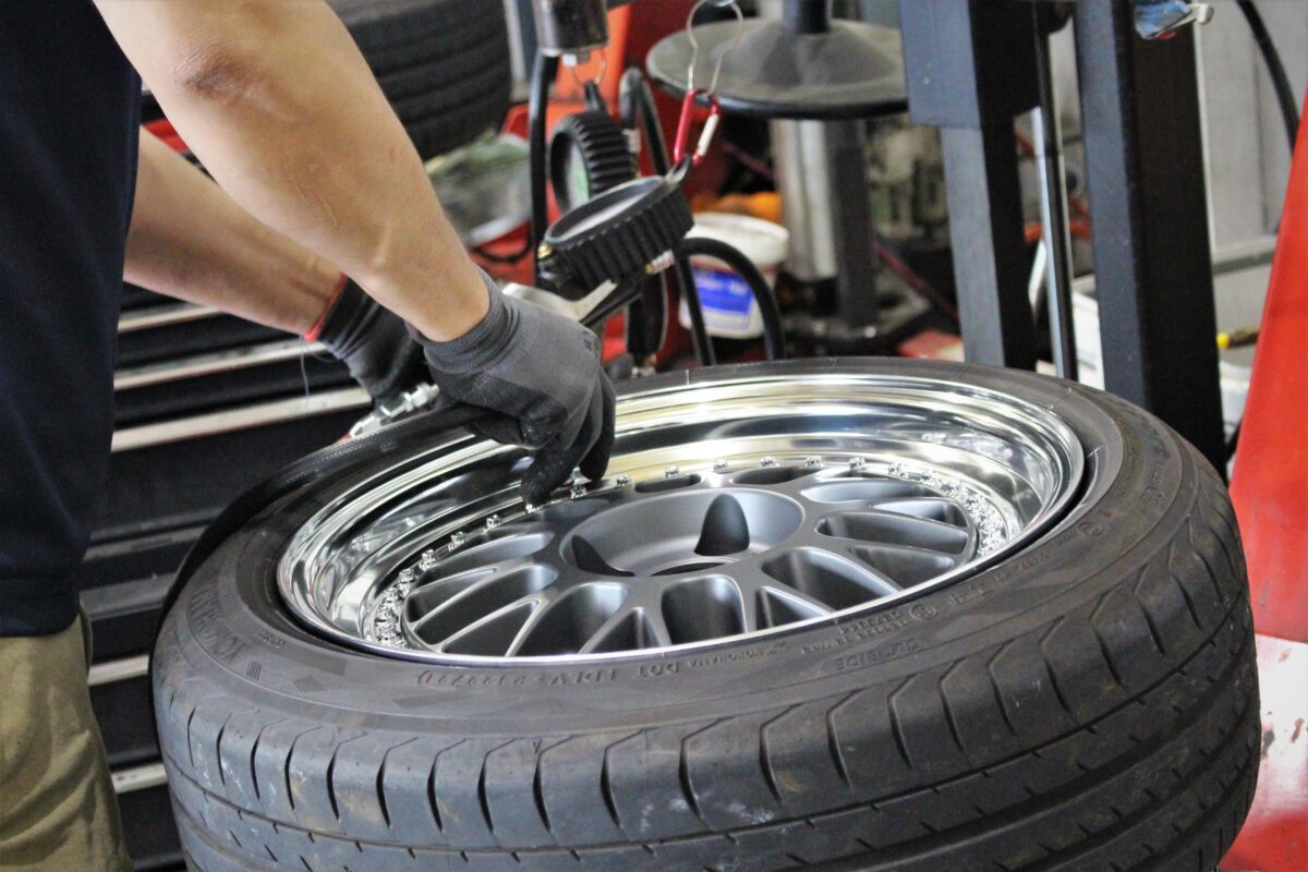 タイヤは純正品がまだまだ使用可能な状態だったので抜き替え作業を行いました。