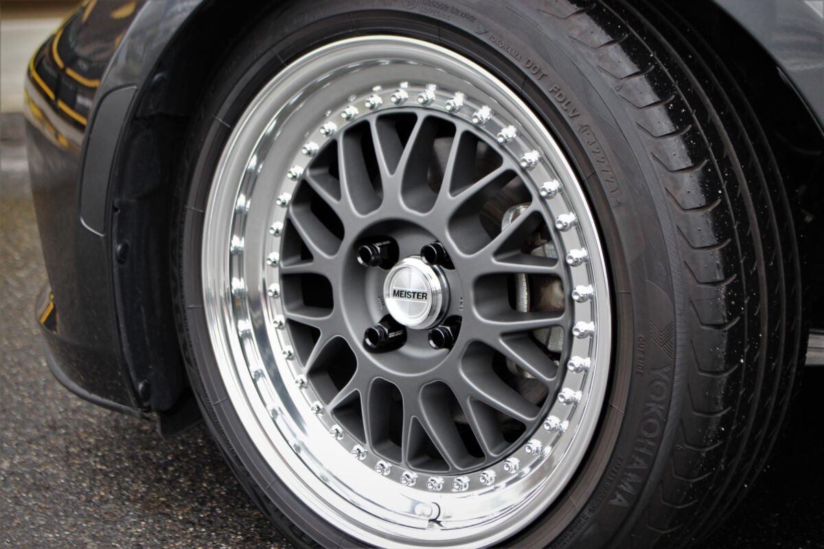 3ピースホイールなのでカラーもサイズも変更幅が広いのでクルマの雰囲気をガラリと変えることも出来ちゃいます(*^^*)今回はボディカラーと同系のマットカーボンを装着です。