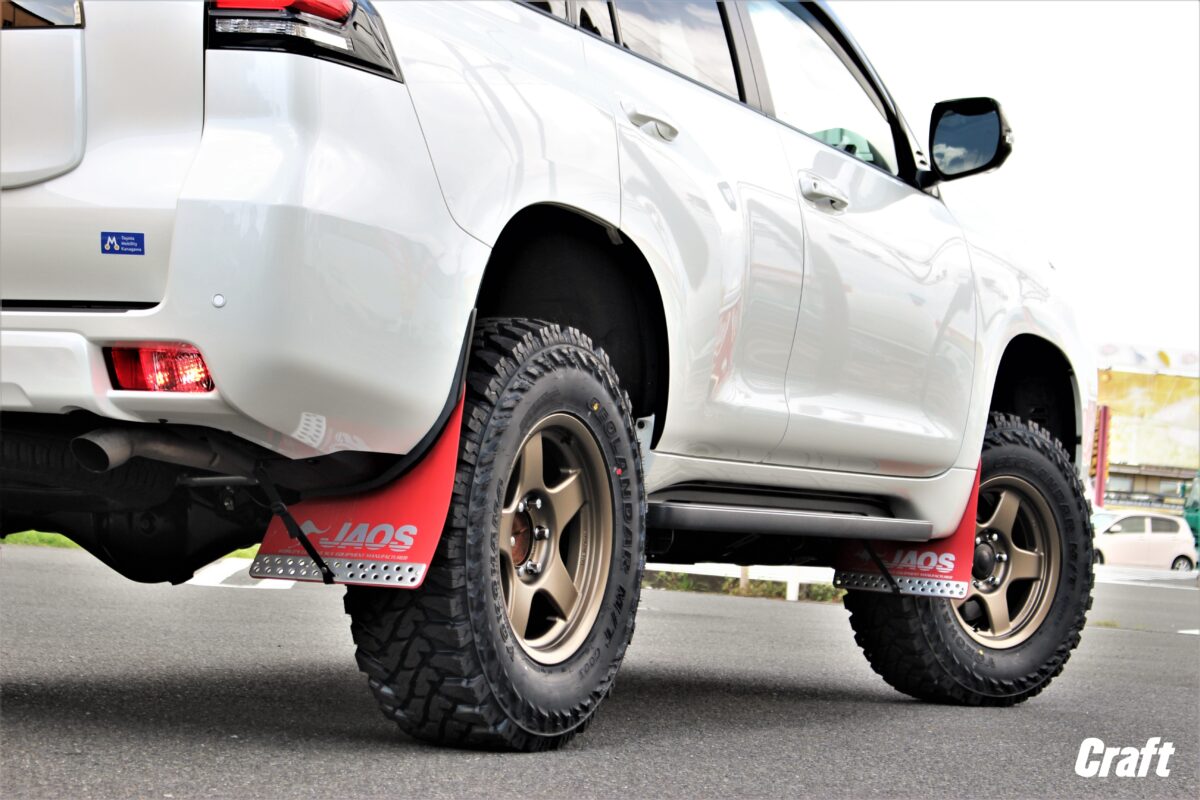 150プラドのリフトアップ量ですが、前後で1インチ差程にする事でタイヤとフェンダーのクリアランスをキレイに揃える事が出来ます。