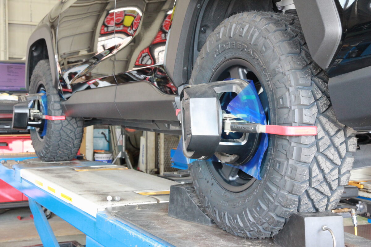 基準値からズレた4輪のトゥ角を調整し、施工終了。