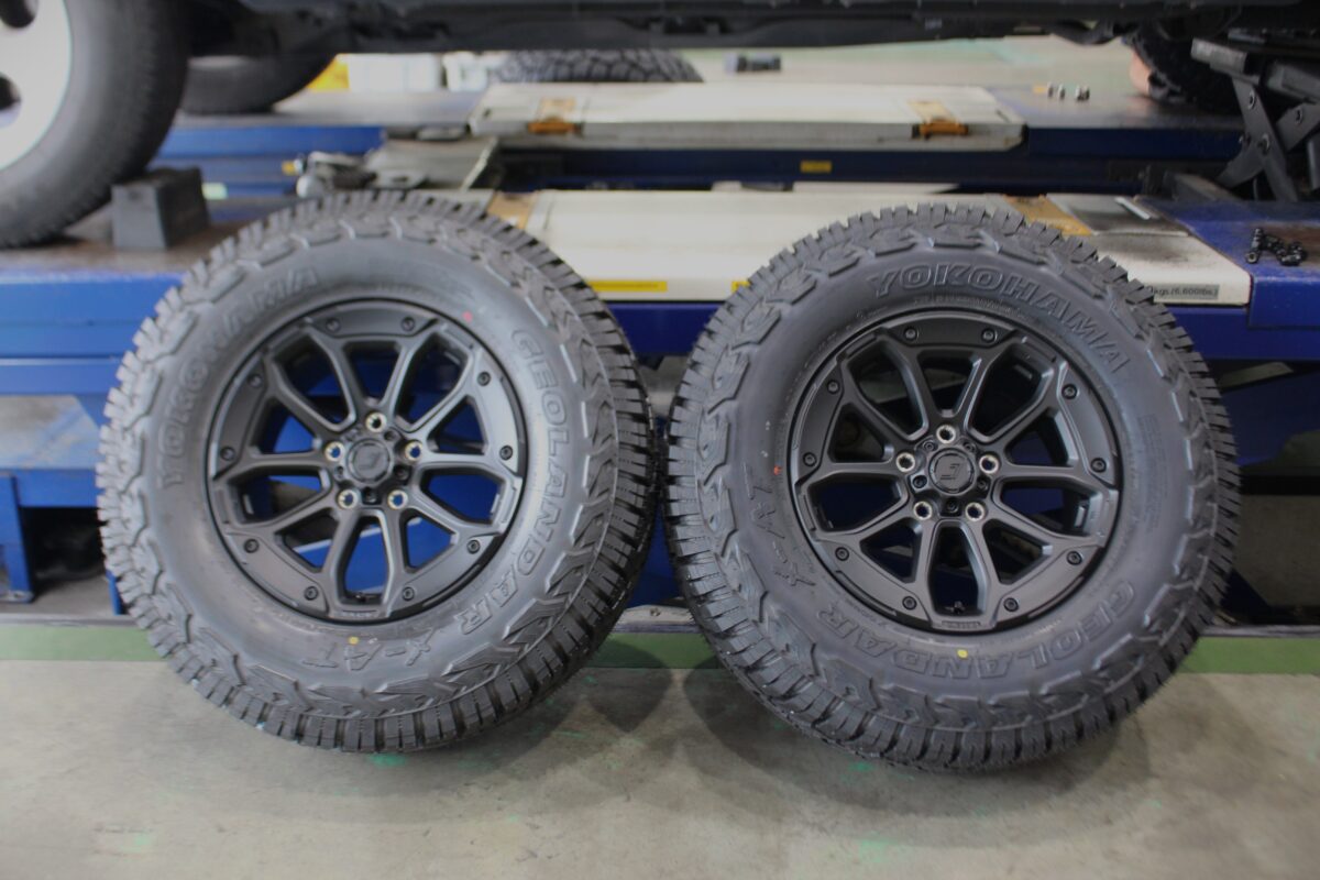 タイヤは、ジオランダーX-ATの見た目の迫力が十二分のデザインを選択。ラングラーのボディサイズにドハマりのタイヤパターン。