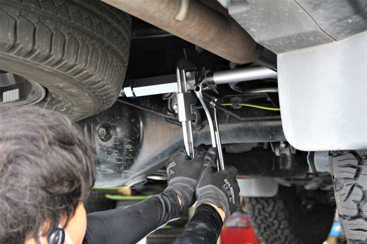 リフトアップ時に変化するドライブシャフト角度を補正する事で、ドライブシャフトブーツへの負荷軽減も狙います。