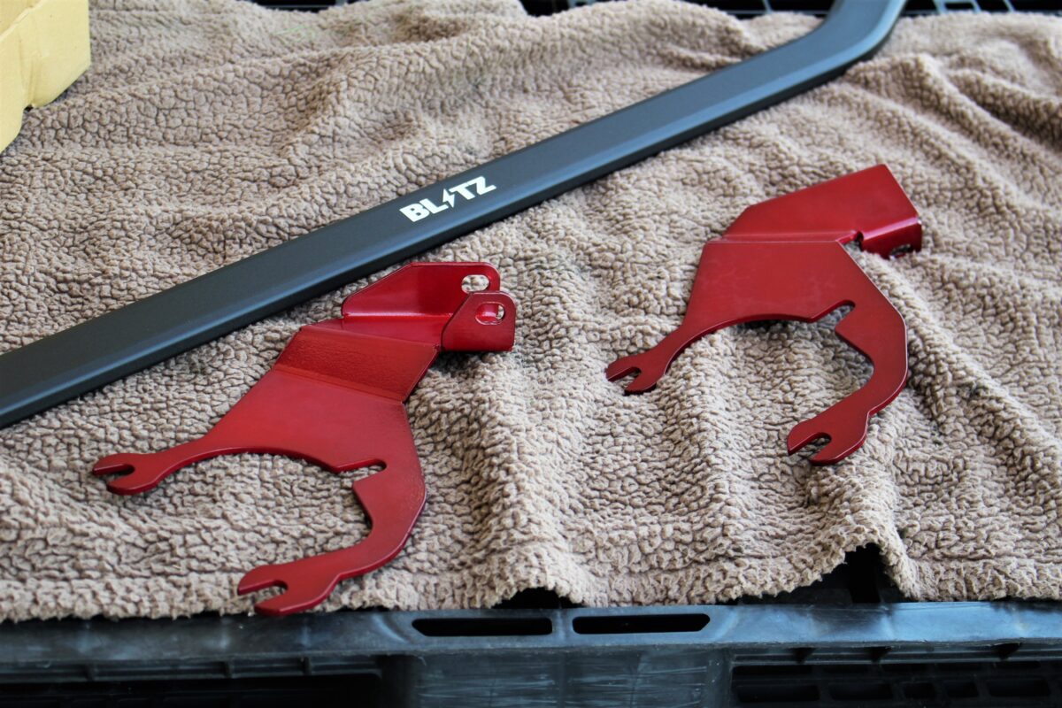 レッドメタリックのブラケットとブラストブラックのシャフトコンビでエンジンルームをイロドリ。