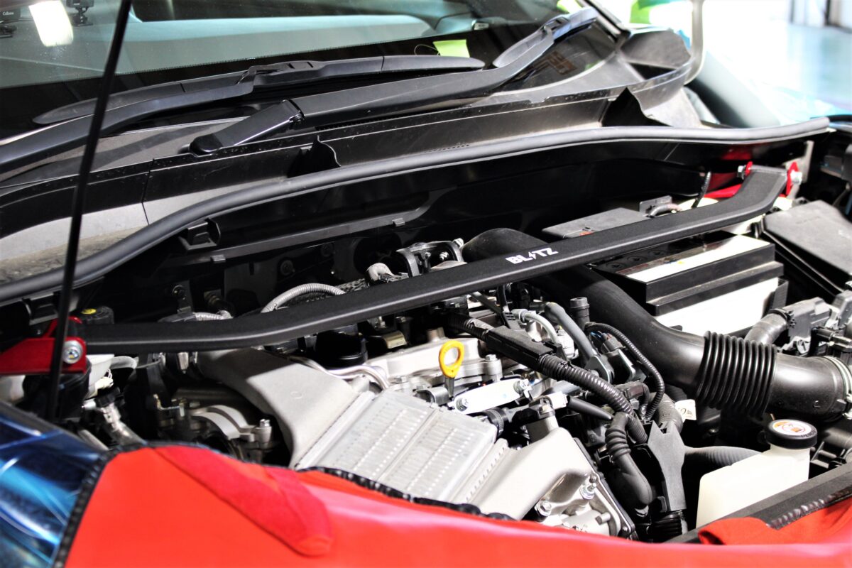 ストラットタワーバーを導入する事で、コーナリング時のロール抑制や路面凹凸の追従性も向上します(*^^)v