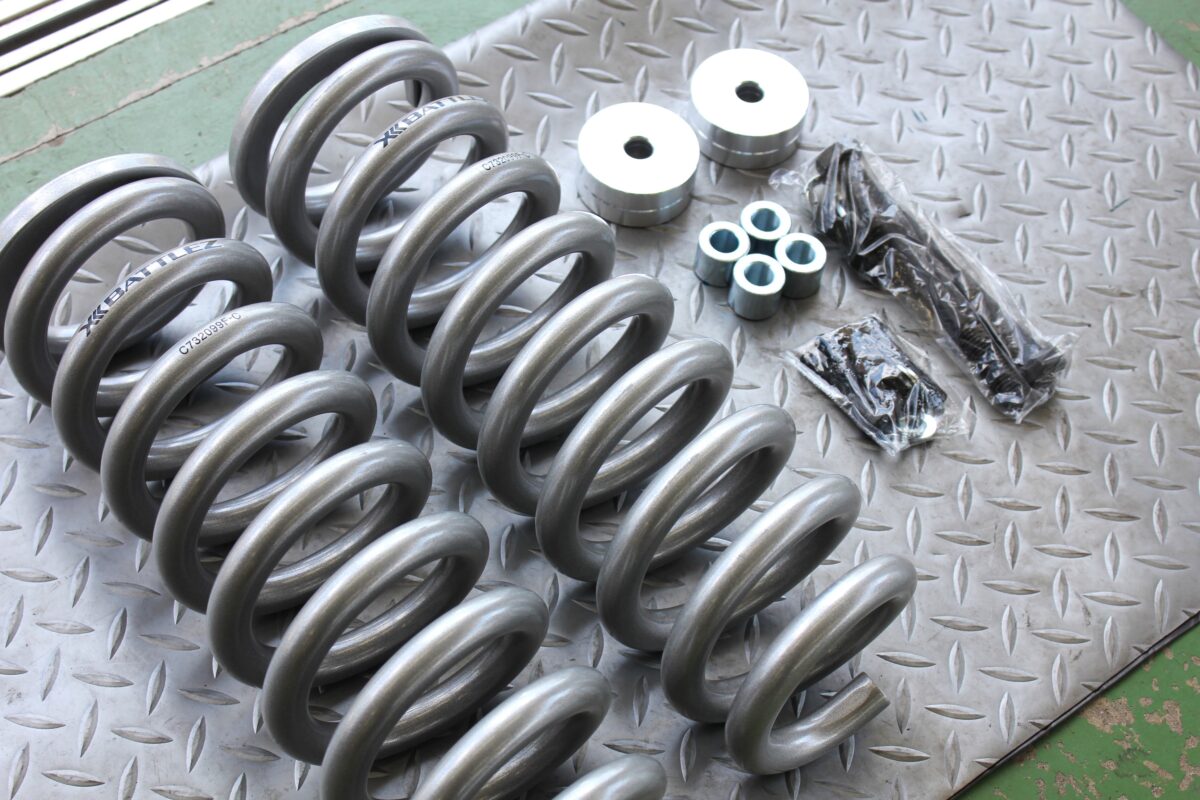 フロントの純正スプリングをこちらに交換していきます。