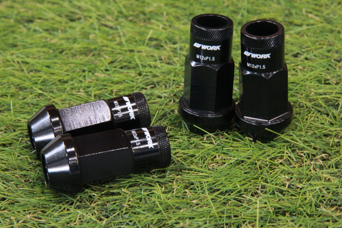 ナットにはホイールに合わせてWORKのアルミロングナットを選択