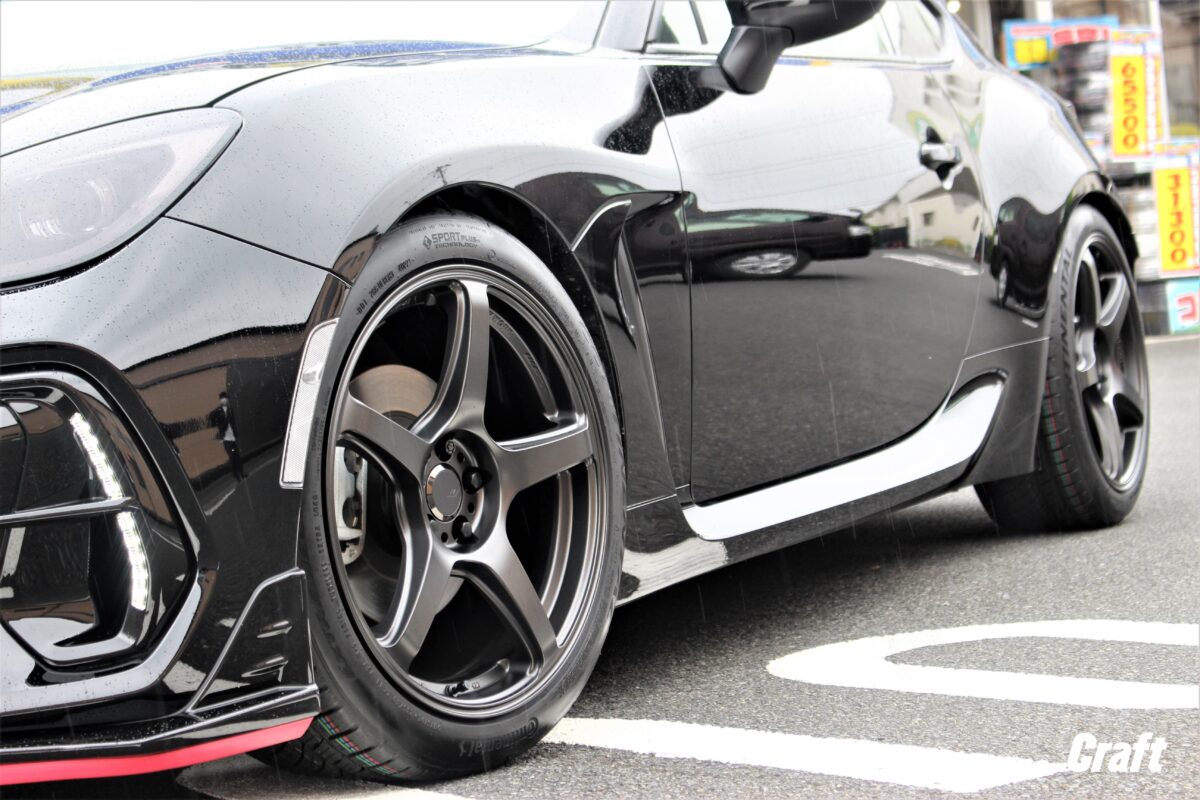 なので車高調でのローダウンは必須、今回のBRZも車高調にてローダウンを行っているからこそ装着出来たと言う訳です。