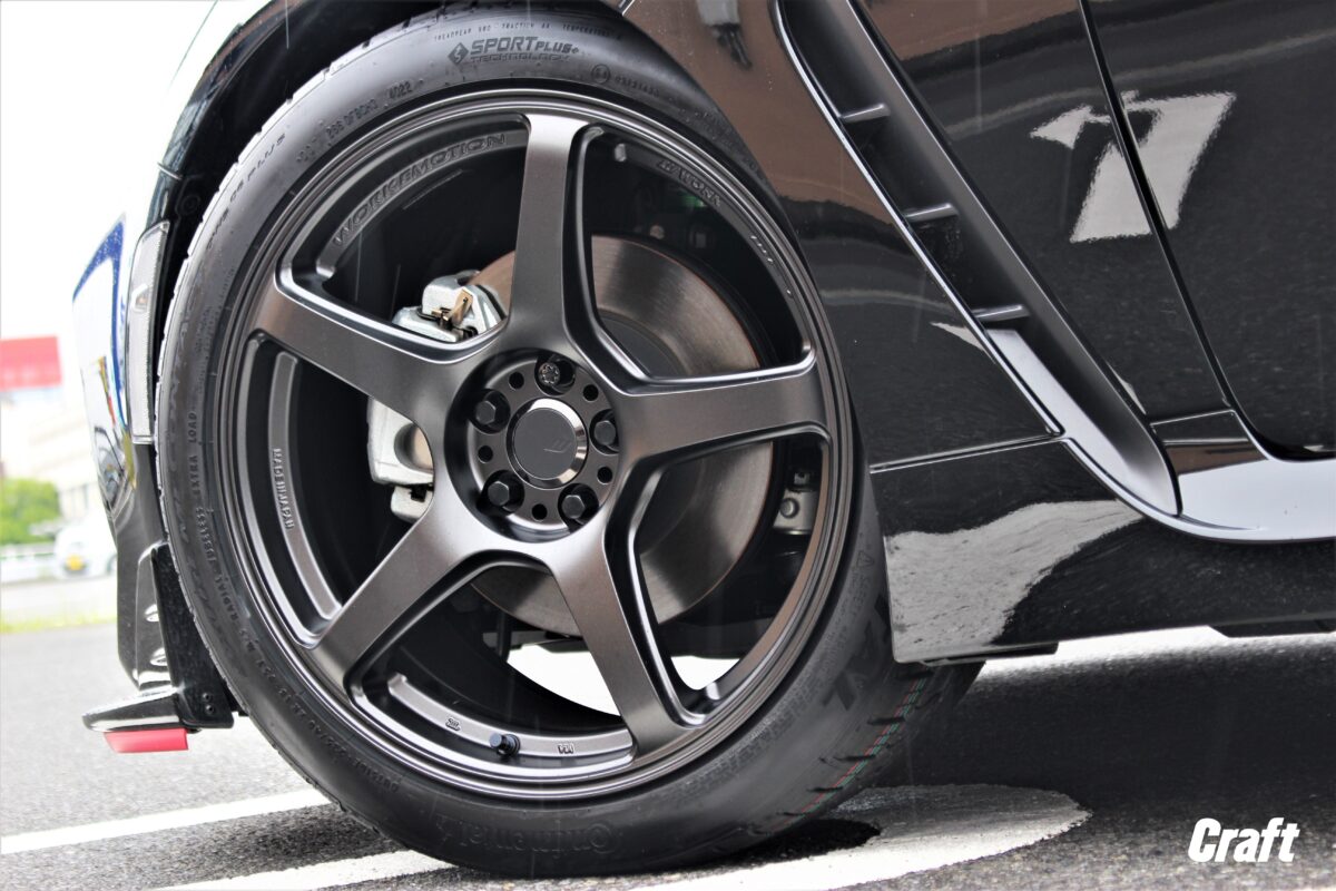 TEIN車高調にてローダウンを行い、ホイールの受け入れ態勢はOK。