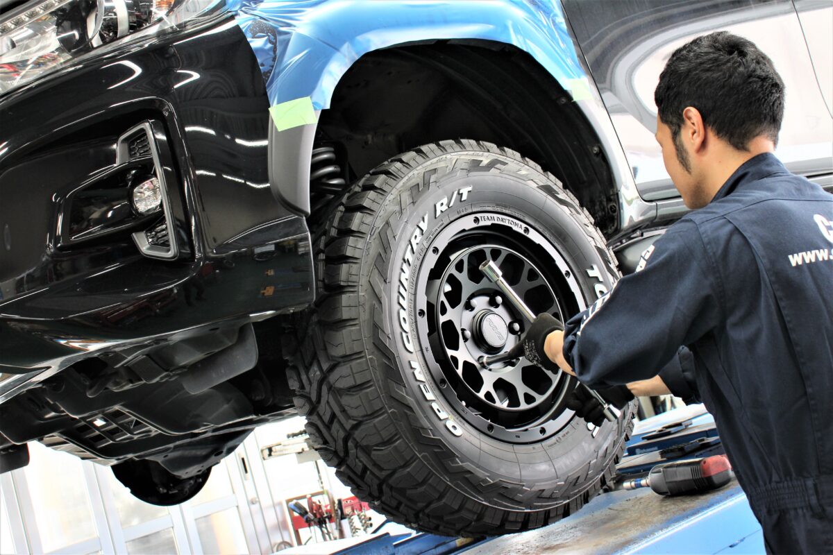 今回もタイヤホイール・リフトアップで当店らしく仕上げていきます♪