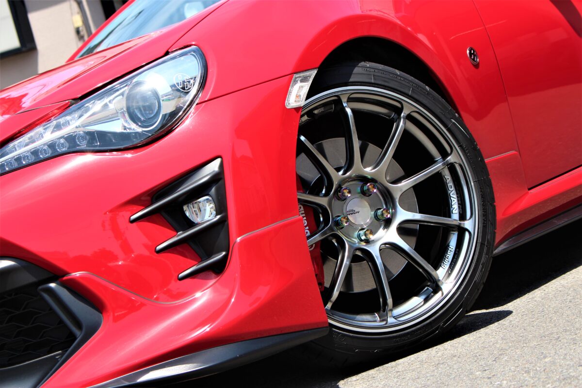 86/BRZは車高やアライメント状況により7.5J~9.5Jと幅広いサイズが装着可能となります。