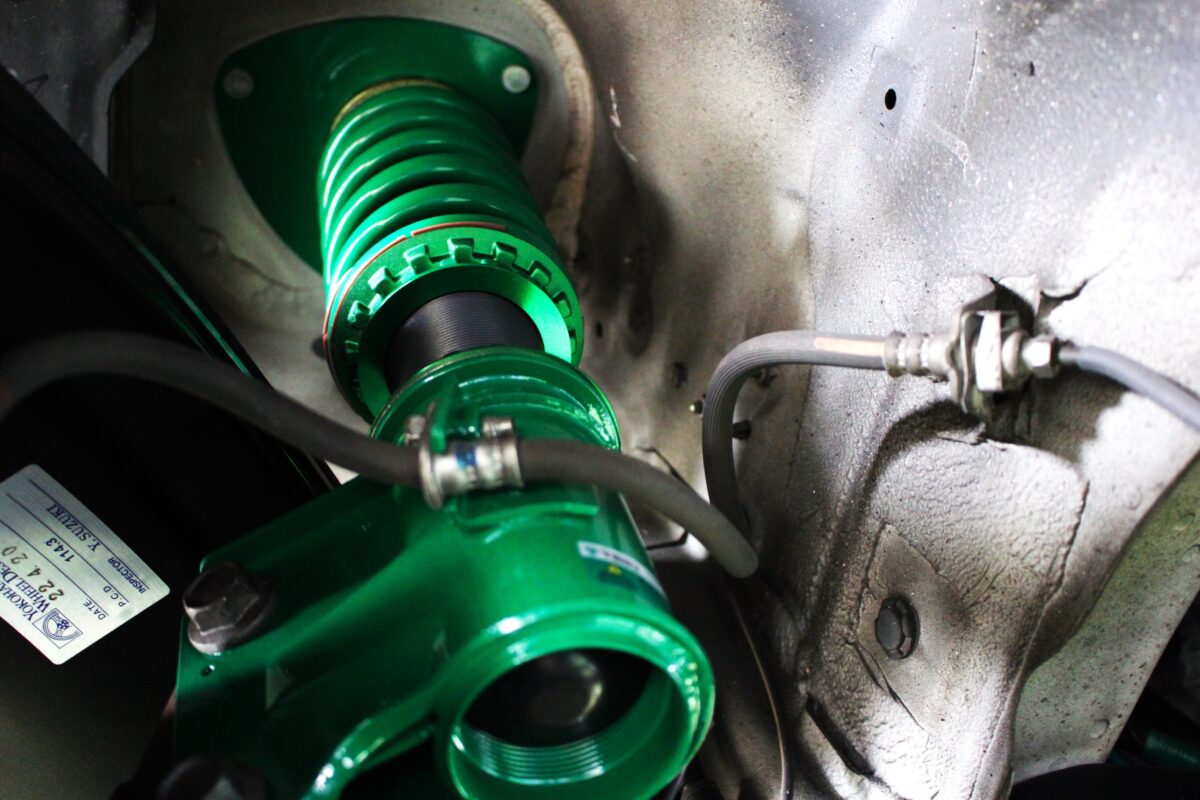 太履きするなら定番であるローダウンが絶対条件。まずは車高調を装着!