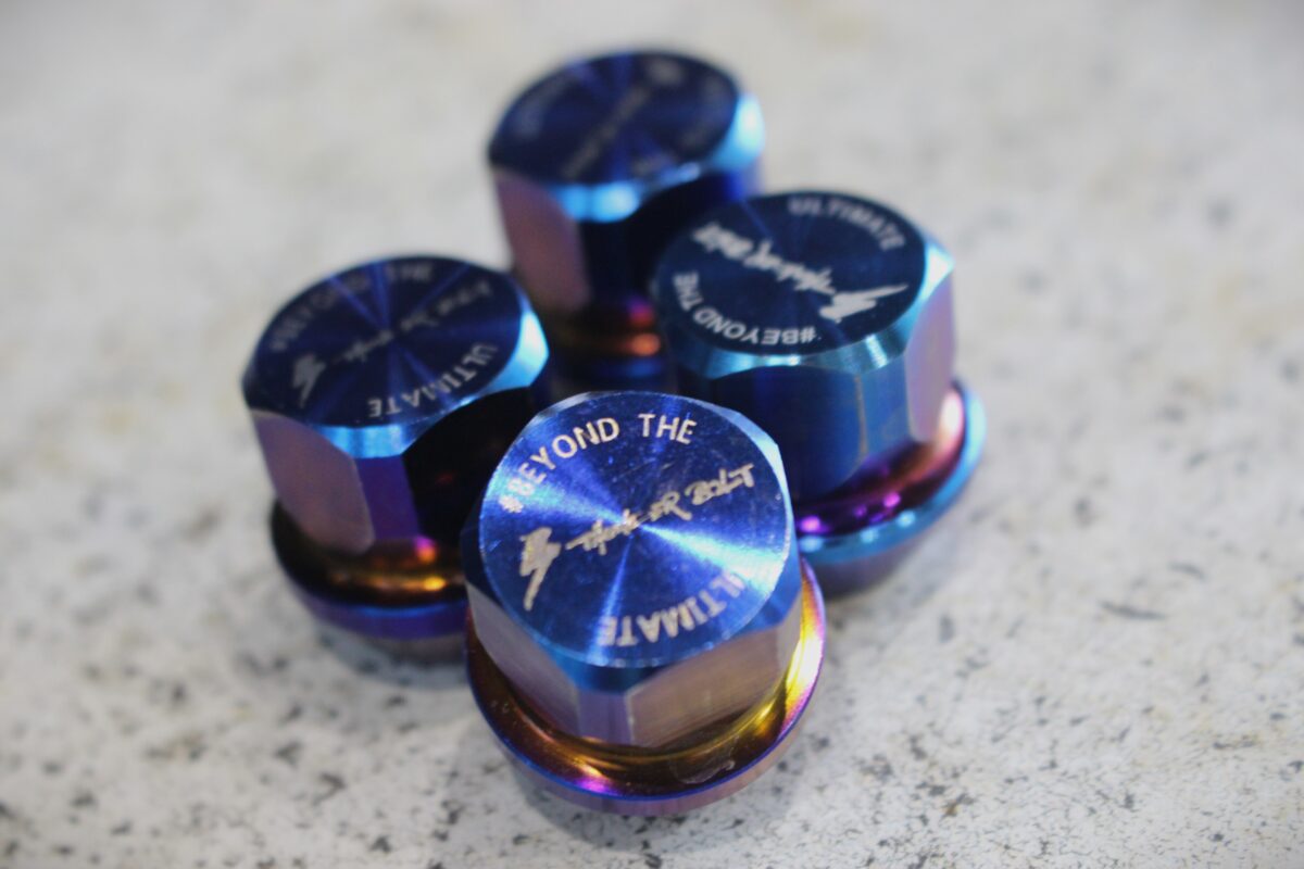 巷で人気となってきているチタン素材のロックナット。新開発の5角形のデザインは、星や桜も同様の形状から