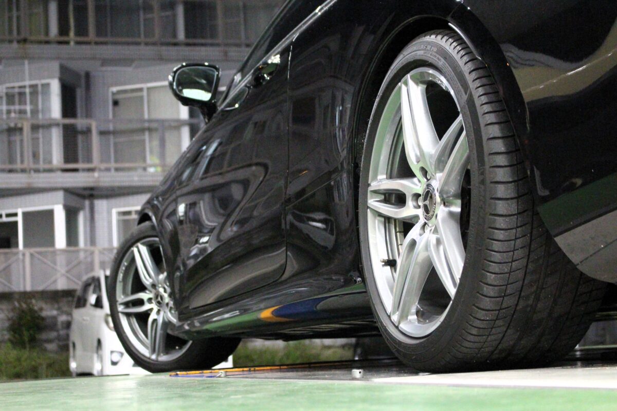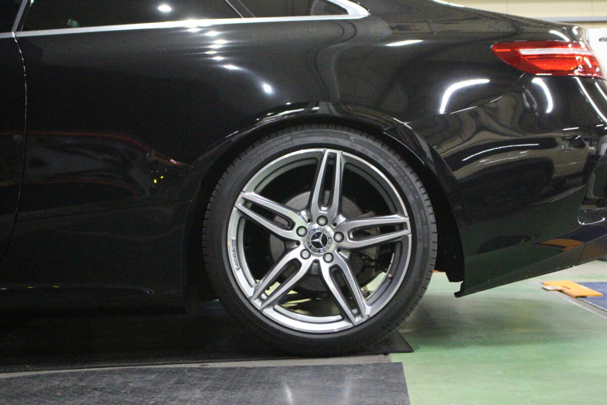 今回はメルセデス Eクラスクーペ C238のローダウンとスペーサー取り付けを