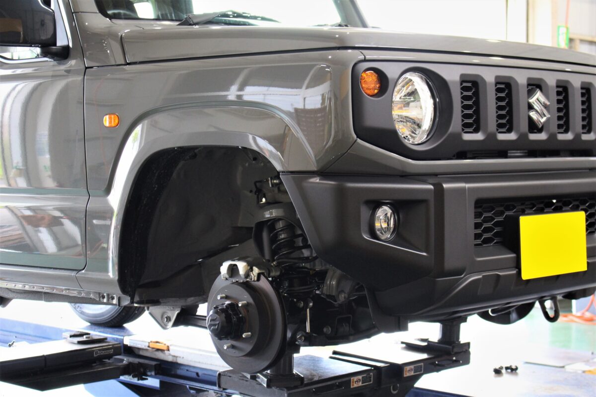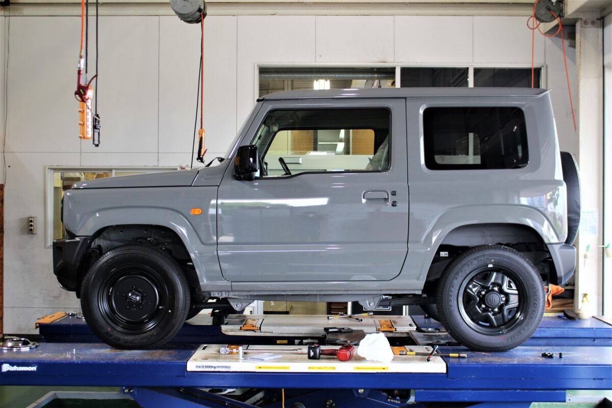 ピットイン中なのはJB64ジムニー。納車間もない状態でご来店いただきました。