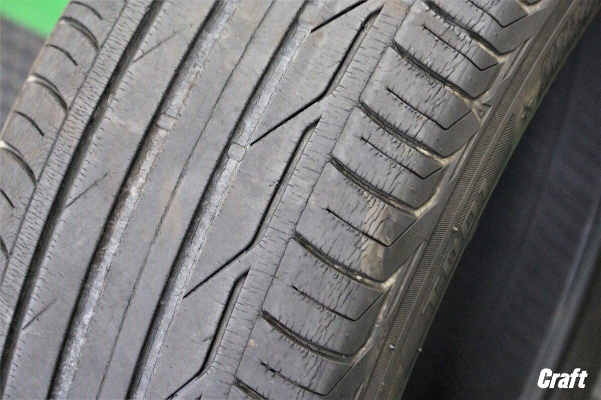 このタイヤの状態で言えば、タイヤ(ゴム)の劣化 がだいぶ進んでいる状態となります。