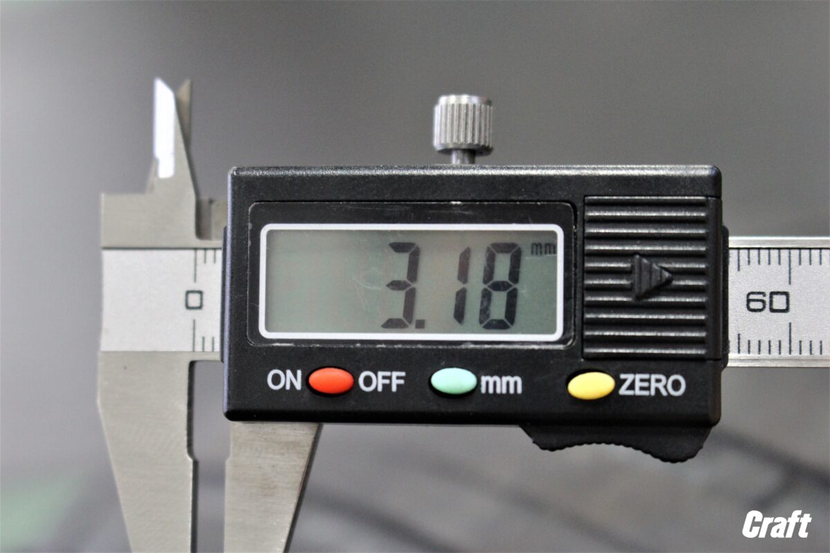 担当佐藤がノギスで測っているので若干の誤差は出ていると思いますが、やはり1.6mm程。