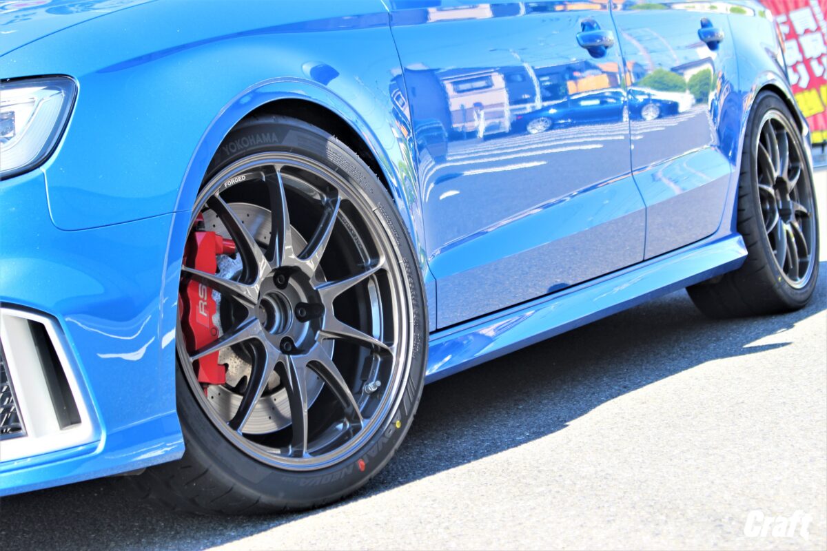 今回のタイヤ・ホイール交換はサーキット走行を視野に入れたアイテム選びだった事もあり、鍛造(たんぞう)ホイールを選択。