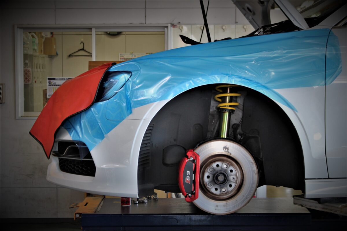 輸入車のローダウンも承ります(車種ご相談ください)。 本日はAUDI S3 というハイモデルながら 男気溢れるロワードトライな1台をご紹介。 車高調はS.T コイルオーバーをセレクト。 K.Wのセカンドブランドとして登場しましたが、 今やそれと並ぶ知名度となりました。 今回取付を行うのはS.TのXタイプ。 純正アッパーマウントは流用、減衰力は固定のモデルです。 ハンドリング特性や拡張性は社外アッパーマウント(ピロor強化ゴム)に軍配ですが 純正アッパーマウントを流用するタイプの絶対的な利点は、その特性からくるマイルドな乗り心地。 ただこれには注意点があり、流用するマウントの傷み具合(年式、走行距離)は 「乗り心地(異音)」と「車高の落ち幅」に直結しますので、状態によってはこのタイミングで新調ってのも手です。 特に輸入車ではポイントとなる部分ですね。 鮮やかなスプリングがイイですね! 下げ具合は・・・見ての通り(笑) やり切りマス! 最後は3Dアライメントで各部を調整。 【 ↓ BEFORE NORMAL ↓  】 【 ↓ AFTER ↓ S.Tコイルオーバー Xタイプ 】 気合いの全下げ! ハイモデルとあってもともと純正でも低い車ですが それをラインにしちゃあカッコイイ車は作れないワケで(笑) フェンダーとタイヤの隙間をしっかり埋めさせていただきました。 ここまで下げるとその低さからくる乗り味はある程度覚悟ですが 純正マウントの特性上、基本は純正の乗り心地の延長線。 ローダウンスプリングではなく最初からコイルオーバーをご指定のあたり、 オーナー様のS3との向き合い方が伝わってきます。 そんなオーナー様が「このまま純正ホイールをスペーサー出して・・・」 となるわけがなく 実車計測。 まずはサイズ測定を行い大まかなサイズ感を把握。 そこからホイールを絞り、後日ブレーキマッチングの型紙をお取り寄せし 無事マッチング完了。ソッコーでホイールをオーダーいただきました! さて、その仕上がりは!? 続報ご期待ください! この度はご用命ありがとうございました。   愛車をローダウンやリフトアップでスタイルアップしよう! クラフト鈴鹿店ブログはスマホで「お気に入り」登録! https://craft-web.pro/blogs/suzuka/
