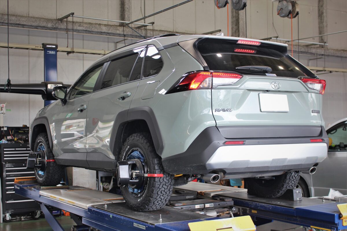 リフトアップ・ローダウン関わらず、足回りの作業を行う際は合わせてアライメント調整をしましょう(*'▽')