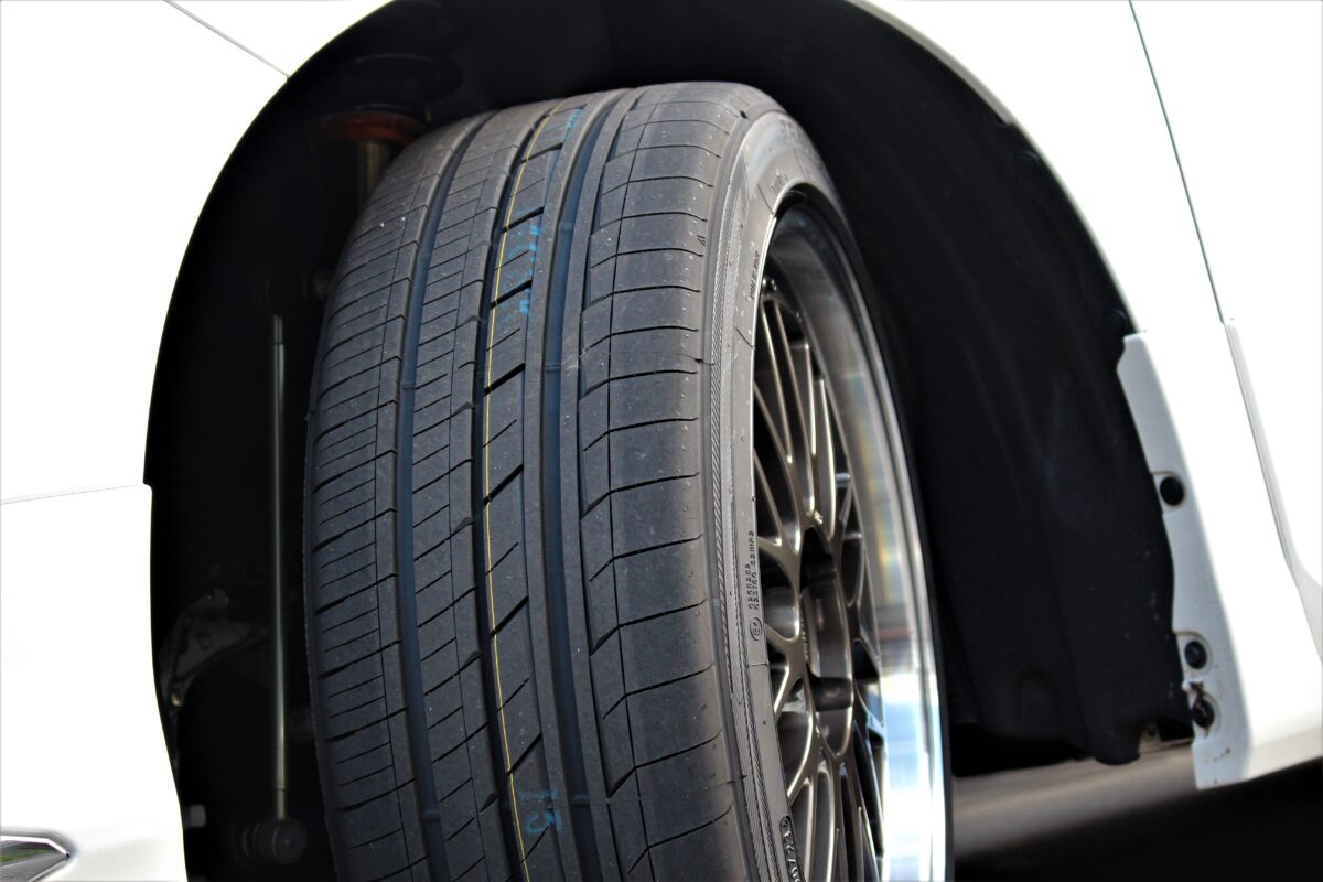 また245/40-20のトランパスと組み合わせて、ショルダーが寝すぎない自然な状態に仕上げました。