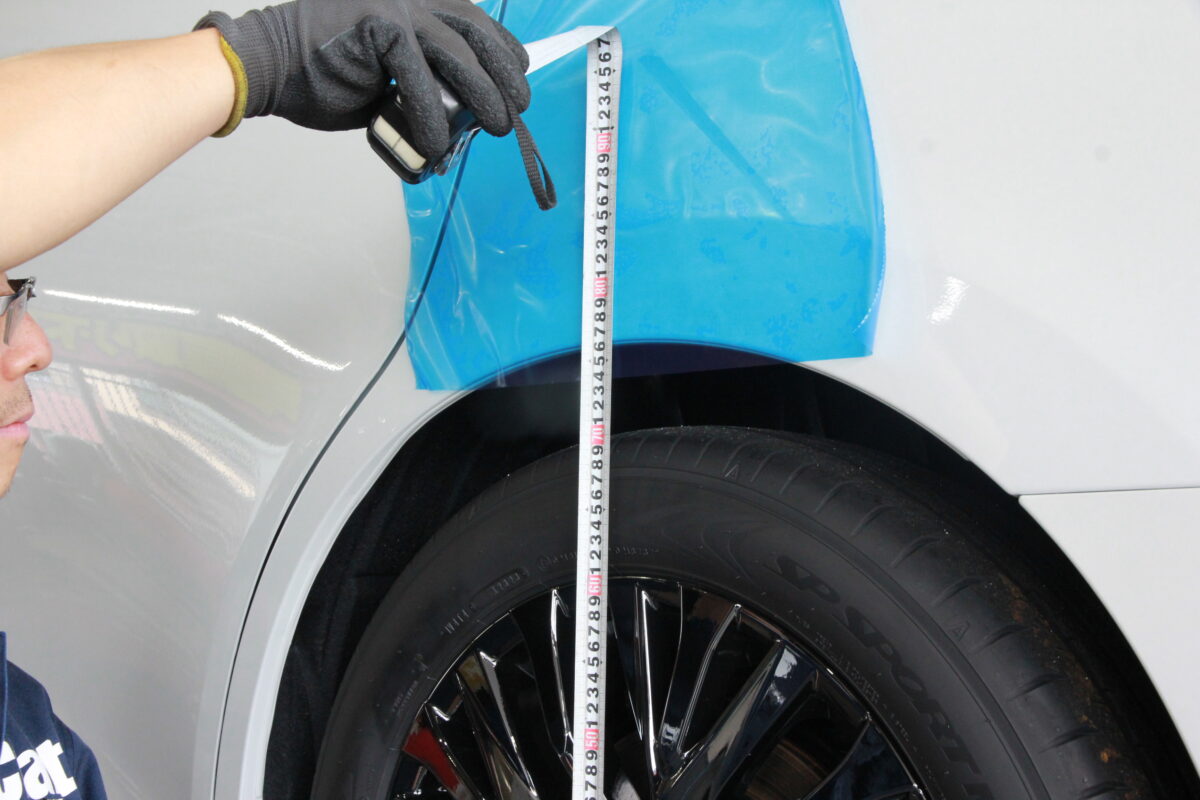 フロントとリヤが地面からフェンダーアーチのトップまでどれくらいあるのかを確認。