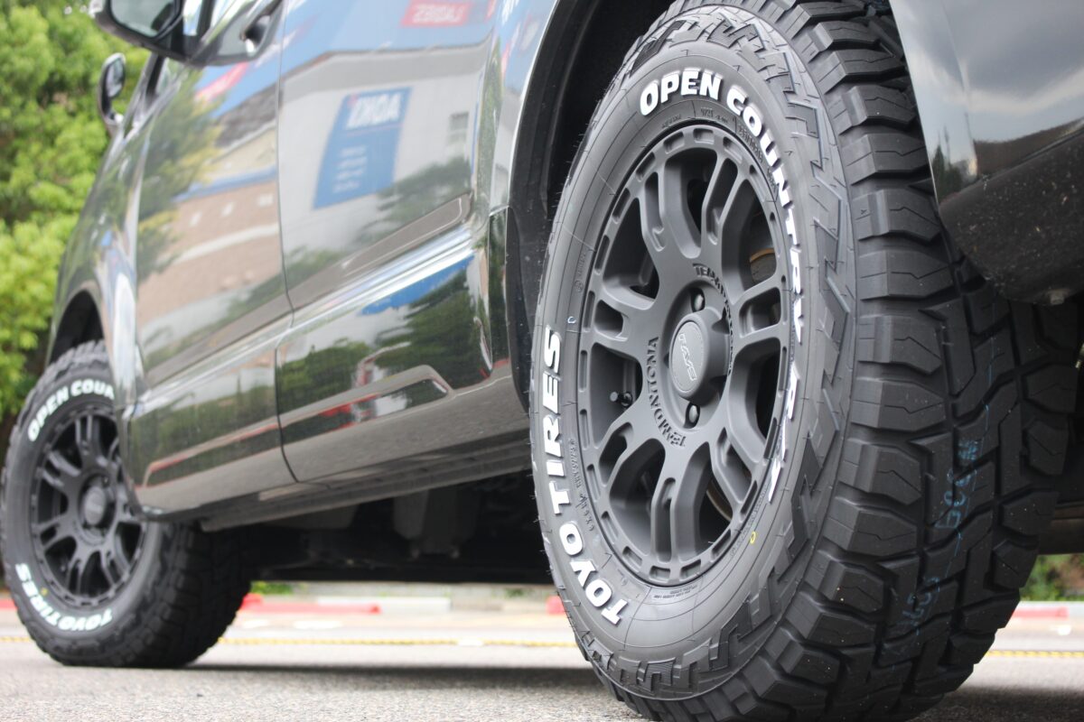 艶消しのホイールにホワイトレターの組み合わせで雰囲気抜群!