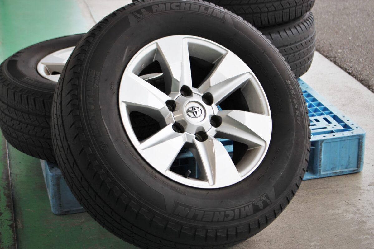 上記の写真は、150プラド純正17インチアルミホイール。プラド純正ホイールの中でも、高額査定が期待できるのが純正19インチアルミ。