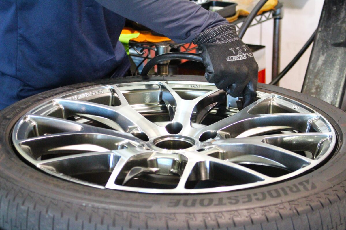 納車間もない状態でしたので、純正タイヤを流用しNEWホイールに組み替えていきます。