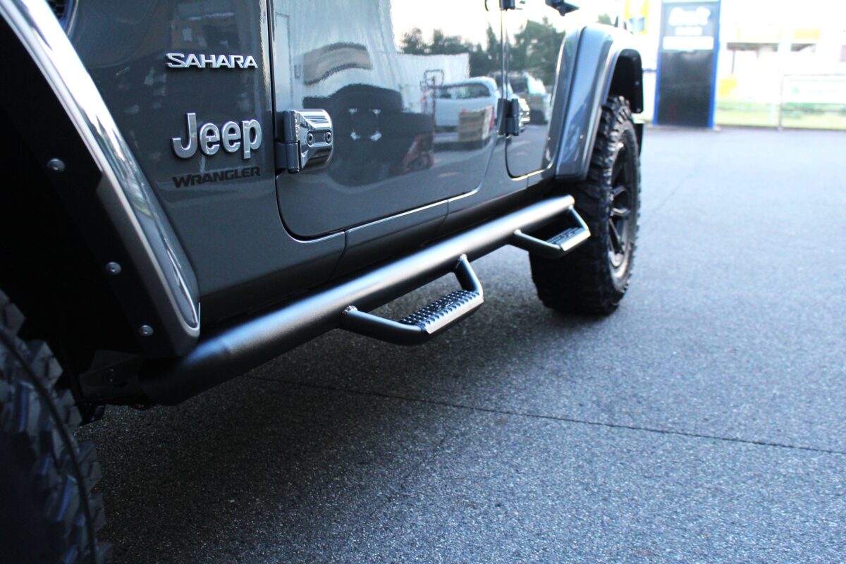 JLラングラーへマフラー・サイドステップ・フォグハーネスカバーの装着模様をご紹介させていただきました。