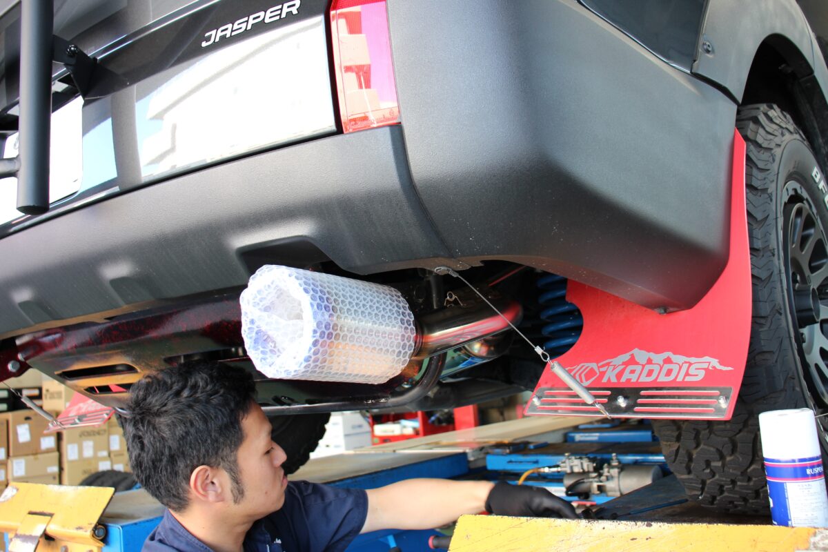 リヤマフラーのみの交換なので作業時間は30分程度。