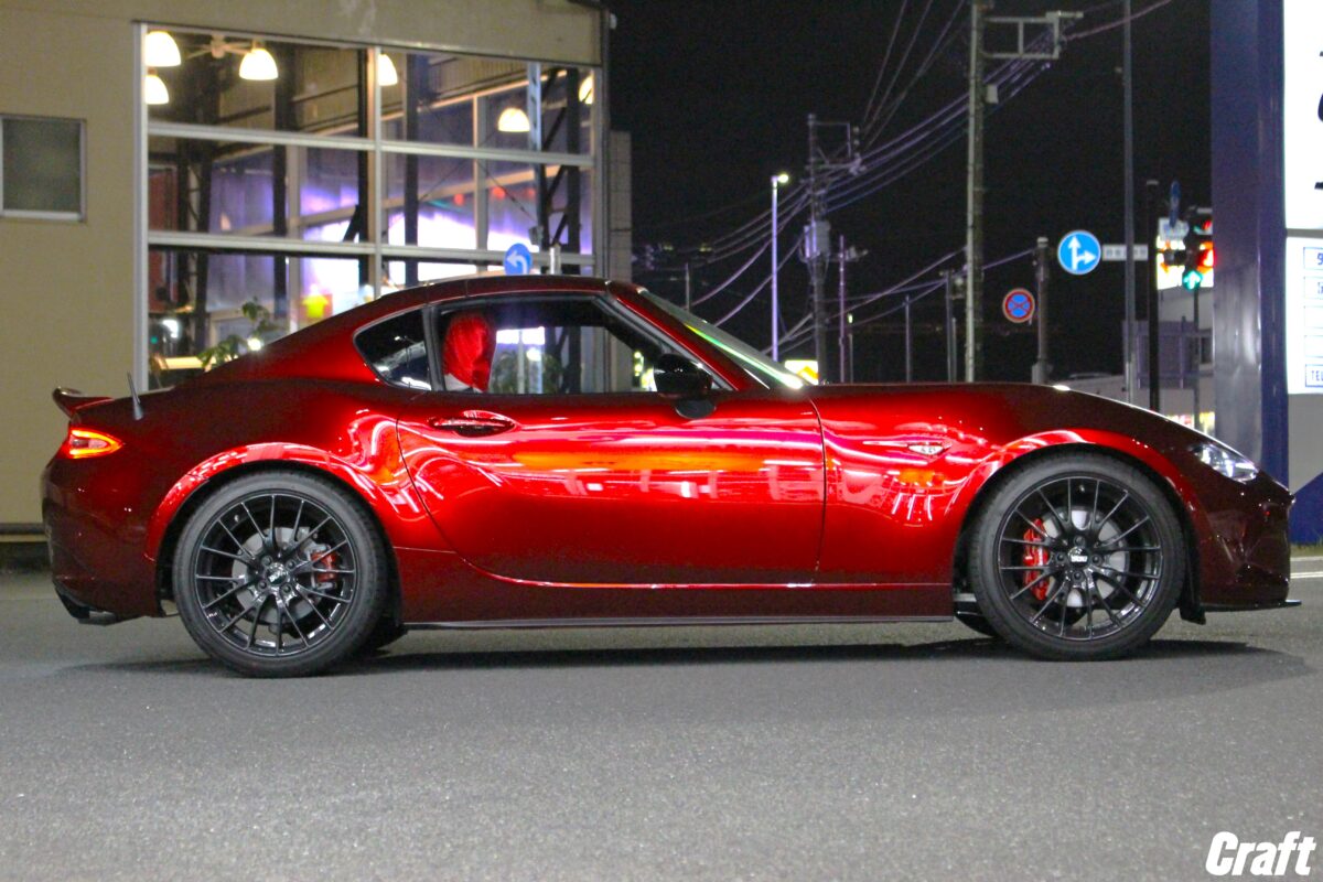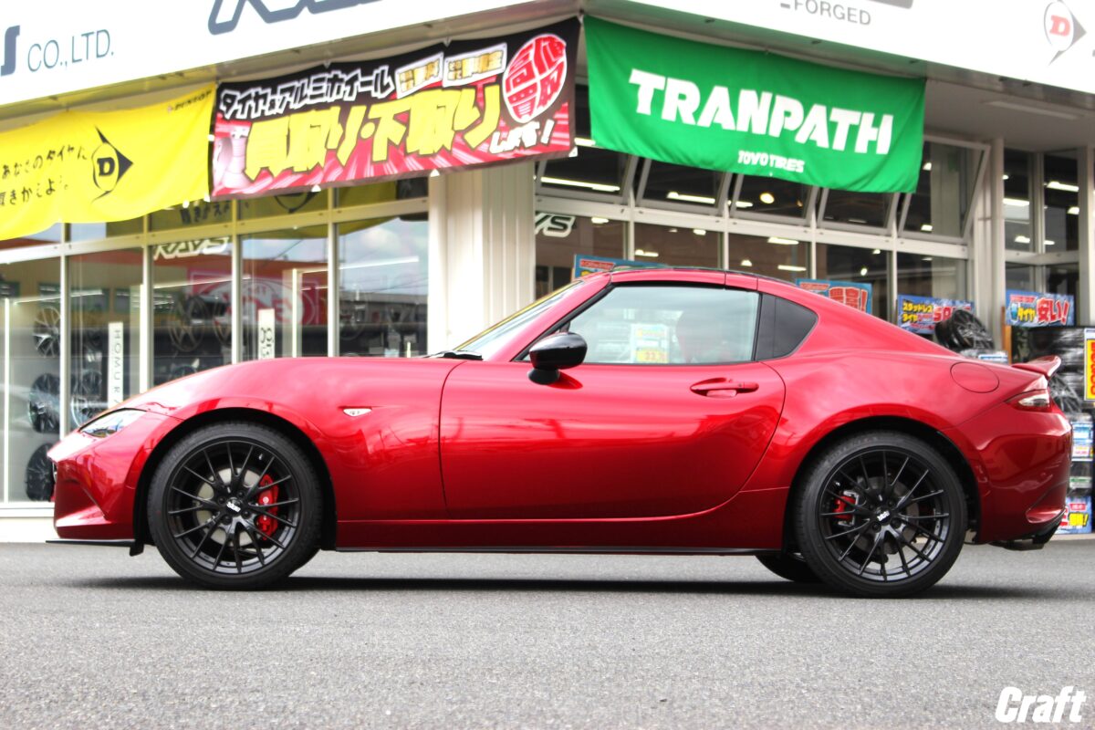 オートエグゼのローダウンスプリングにて20mm程のローダウンを行っているロードスターRF。
