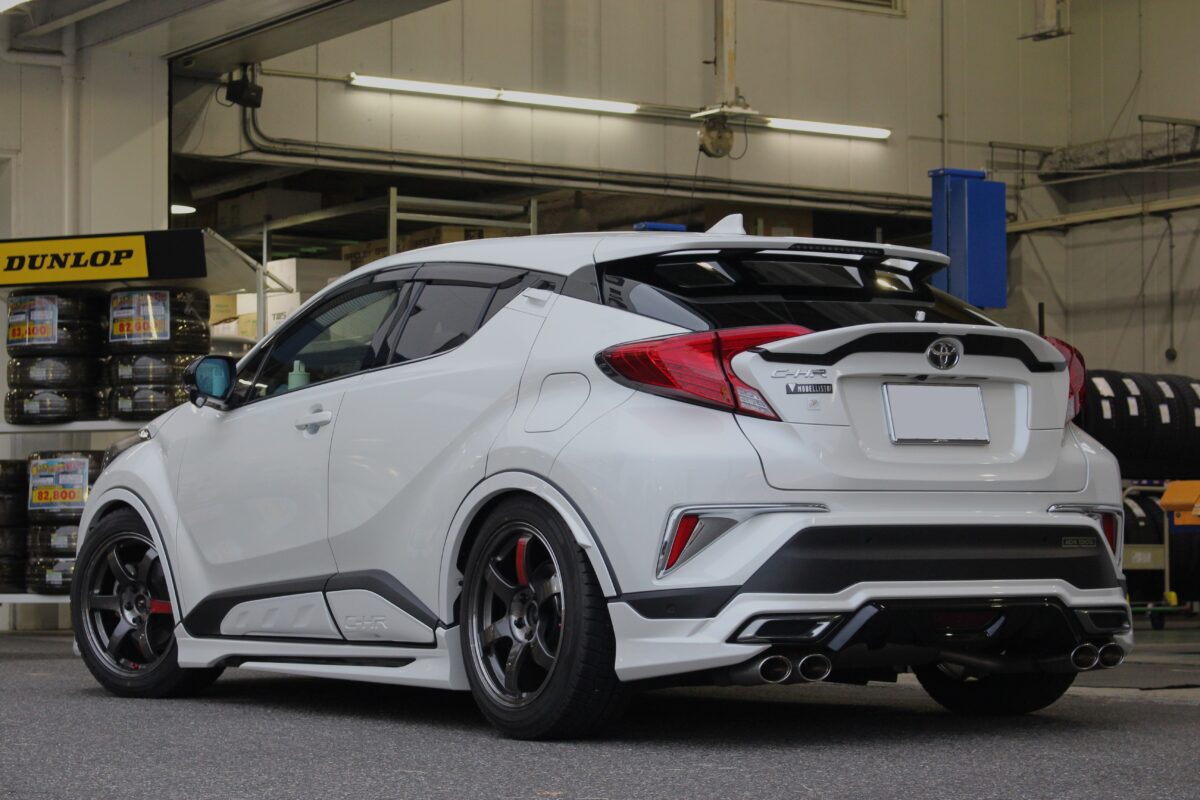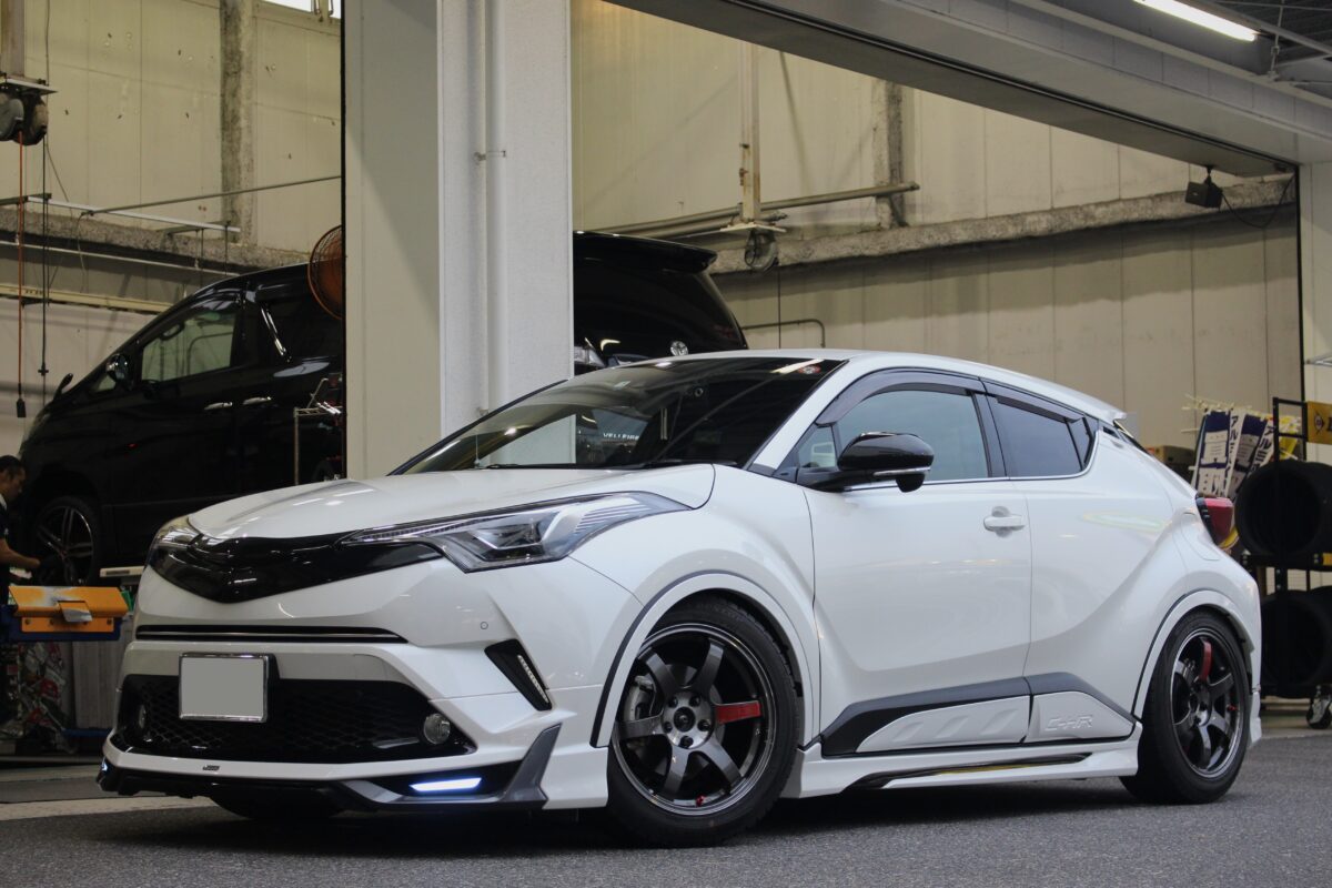 【C-HR】ローダウン済車高にツライチセッティング!!保安基準クリアで仕上げます!