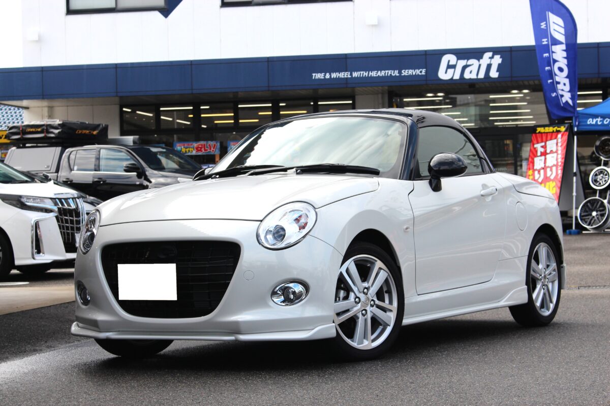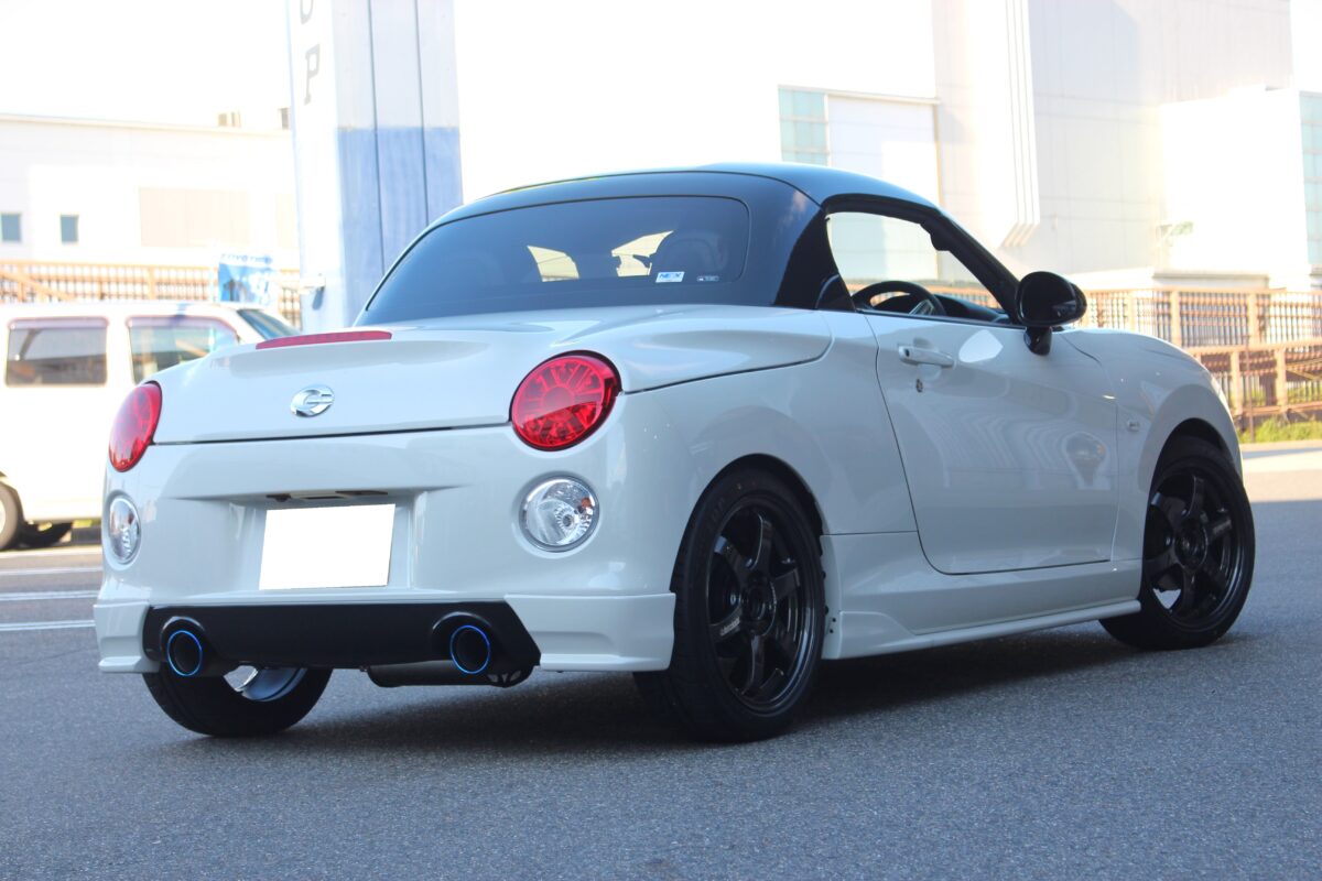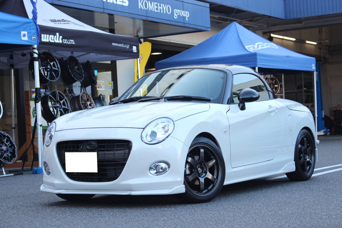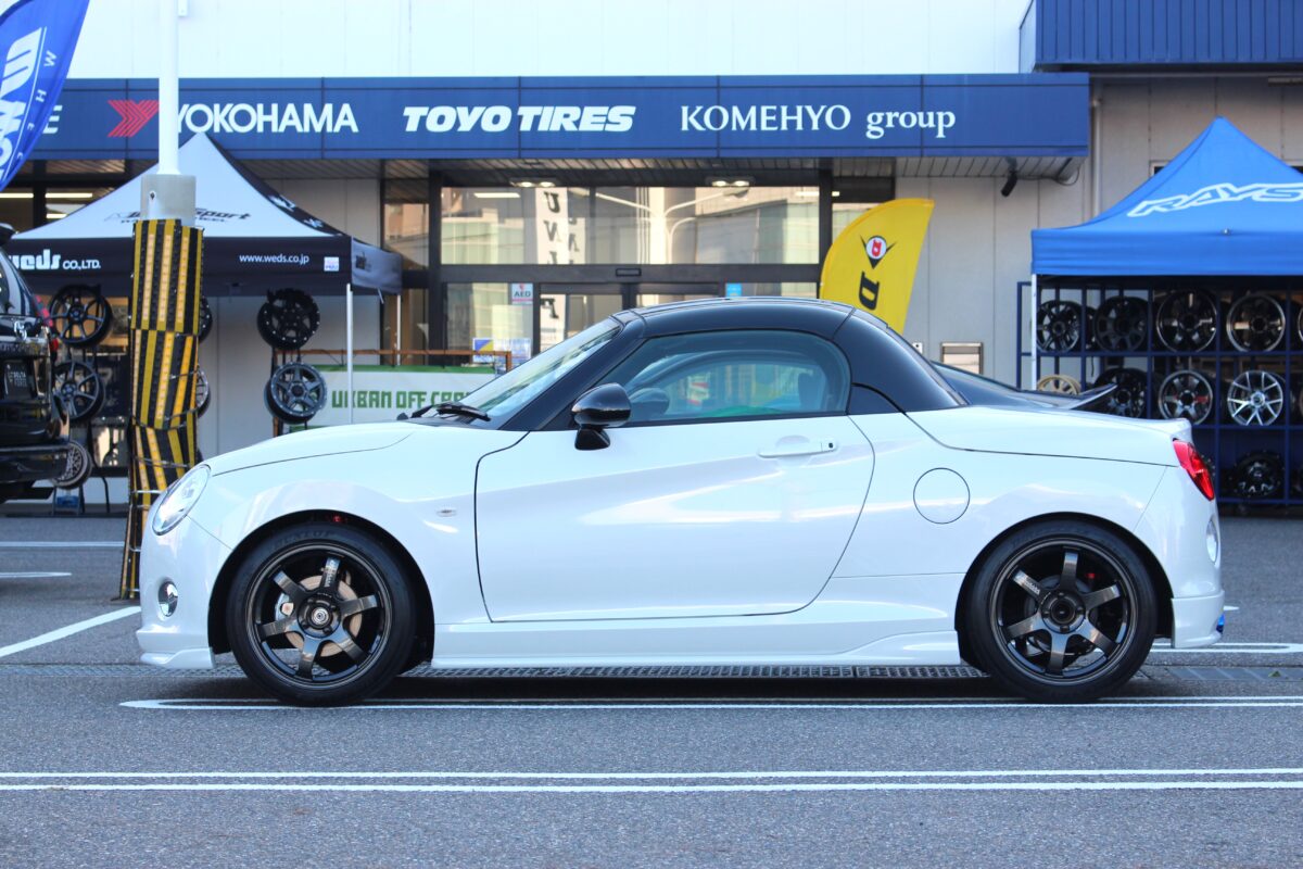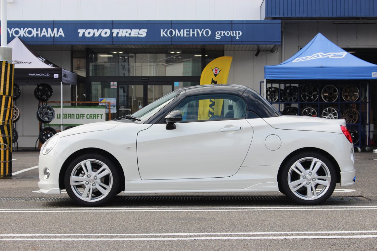 本日のご紹介は”LA400コペン”純正でも16インチを装着したスポーティーな仕上がりですが幅は4.5Jの軽カーサイズ