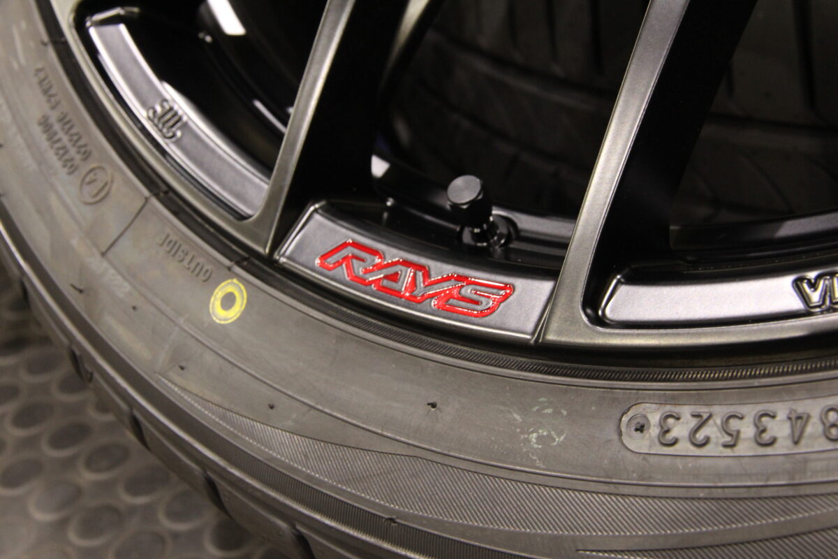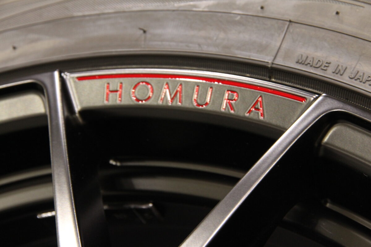 リム外周部にマシニングされている「RAYS」と「HOMURA」の刻印は