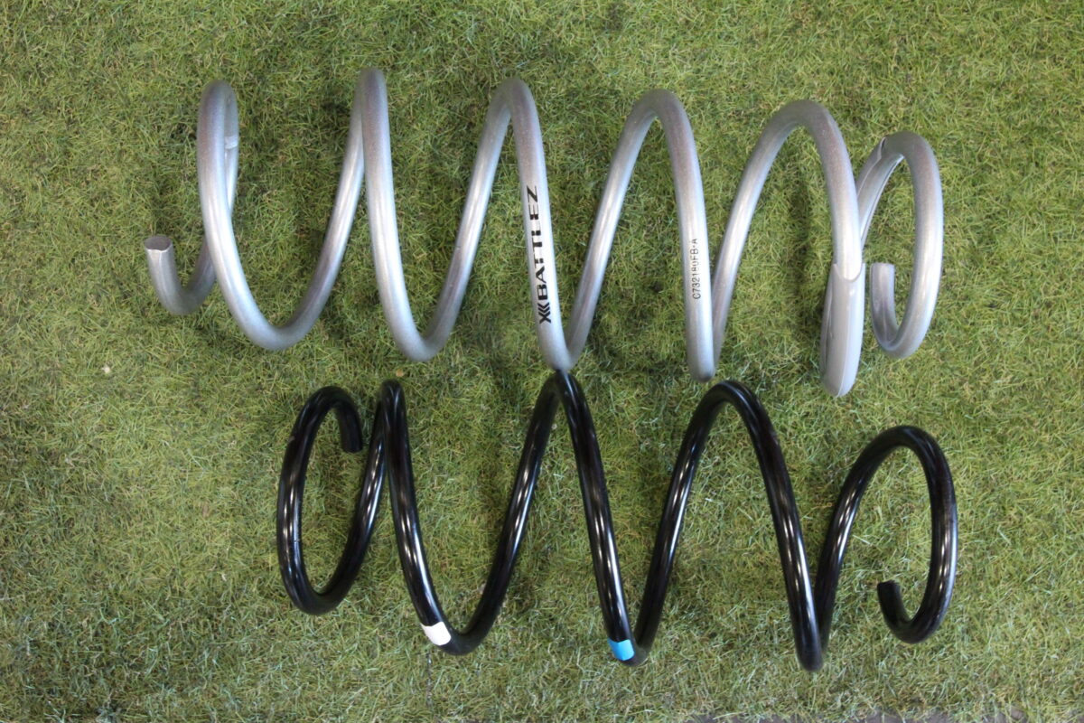 黒いスプリングが純正のスプリング。