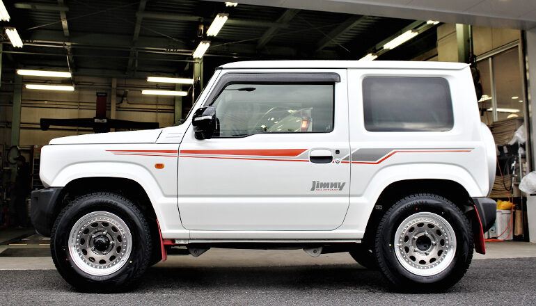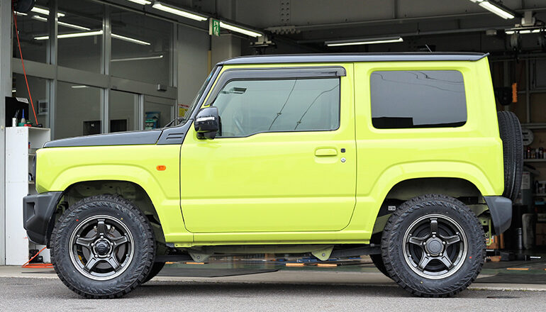 とりわけ、軽自動車のジムニー(JB64型)は、純正車高のままホイールやタイヤをカスタムするだけで雰囲気がグッと良くなる素晴らしい素材です。