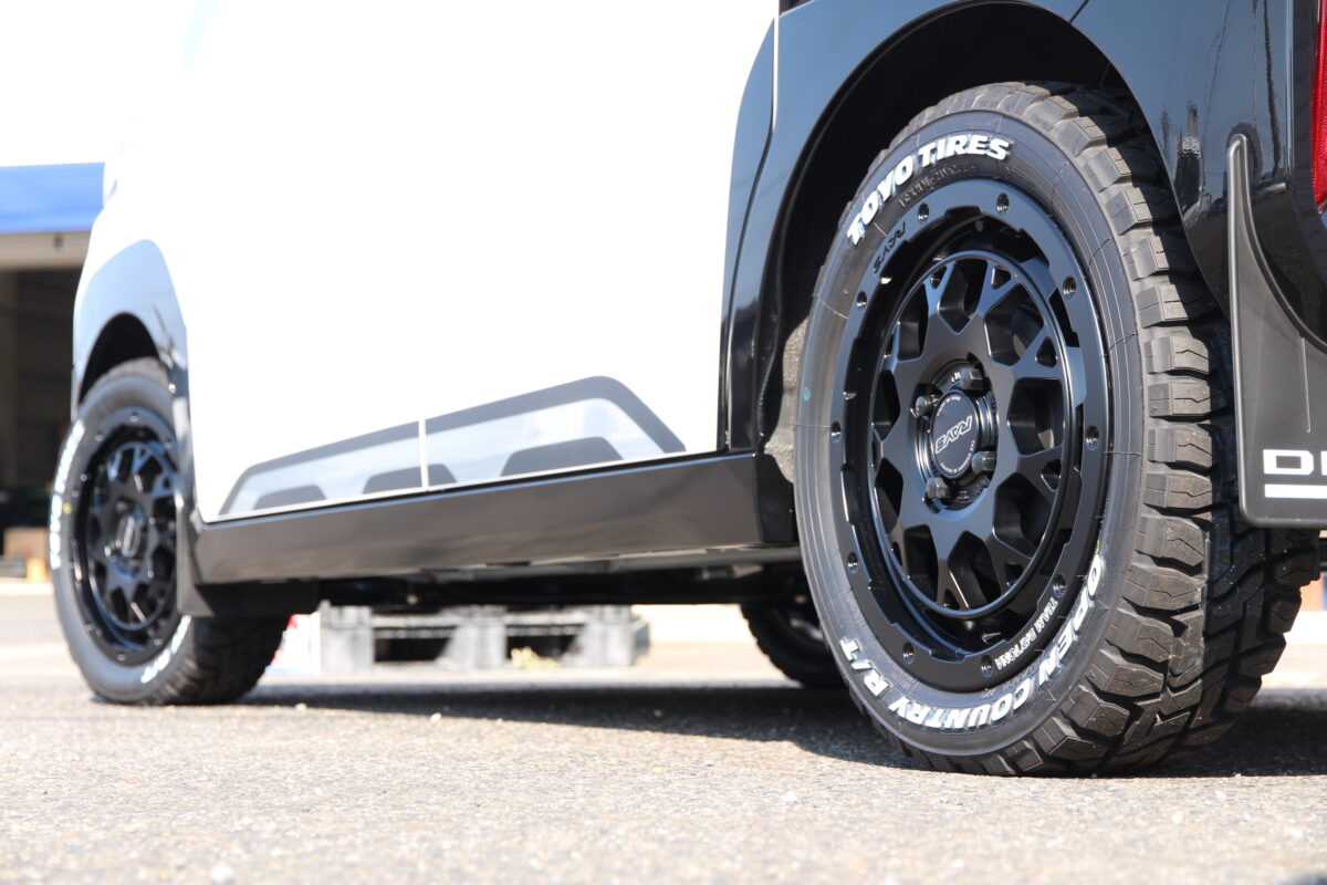 干渉なし!デリカミニのタイヤサイズアップ検証。オープンカントリーRTを2WD・4WDに装着するコツ