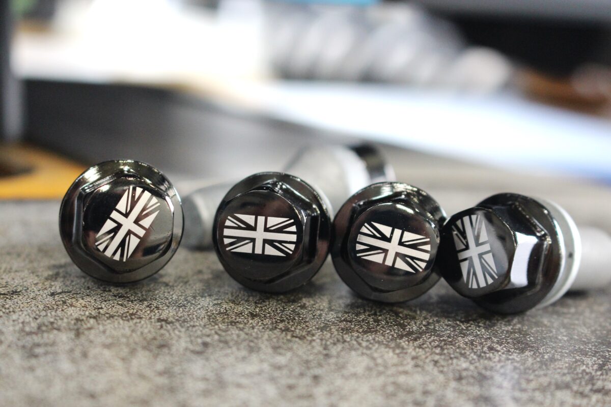 セキュリティ性の高いロックボルト・ナットと言えば”マックガード”ですね!ロック以外のボルトにユニオンジャックロゴの入ったコチラのキットがミニオーナー様におススメですよ(^^)